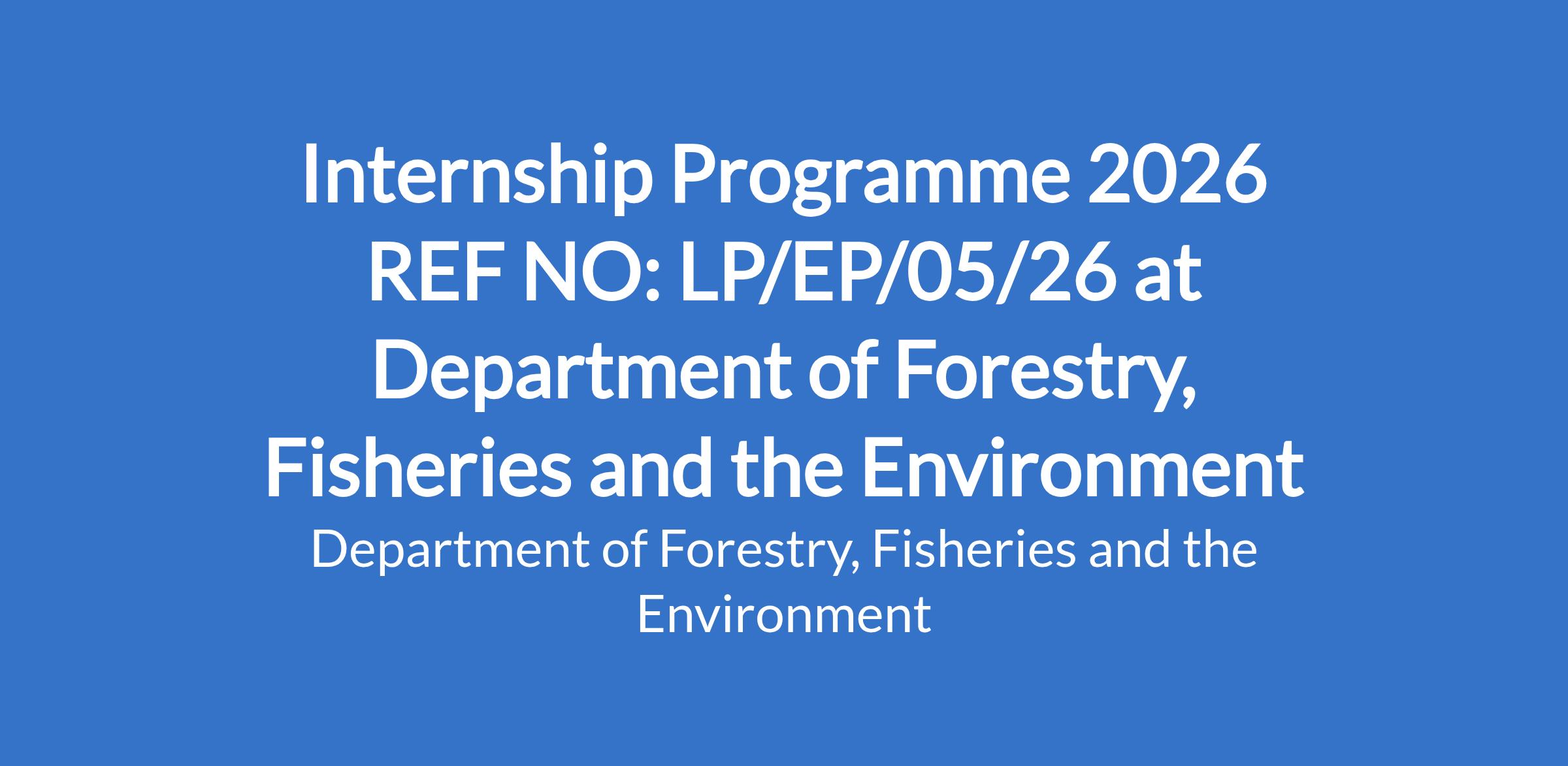 Internship Programme 2026 REF NO: LP/EP/05/26 at Department of Forestry, Fisheries and the Environment