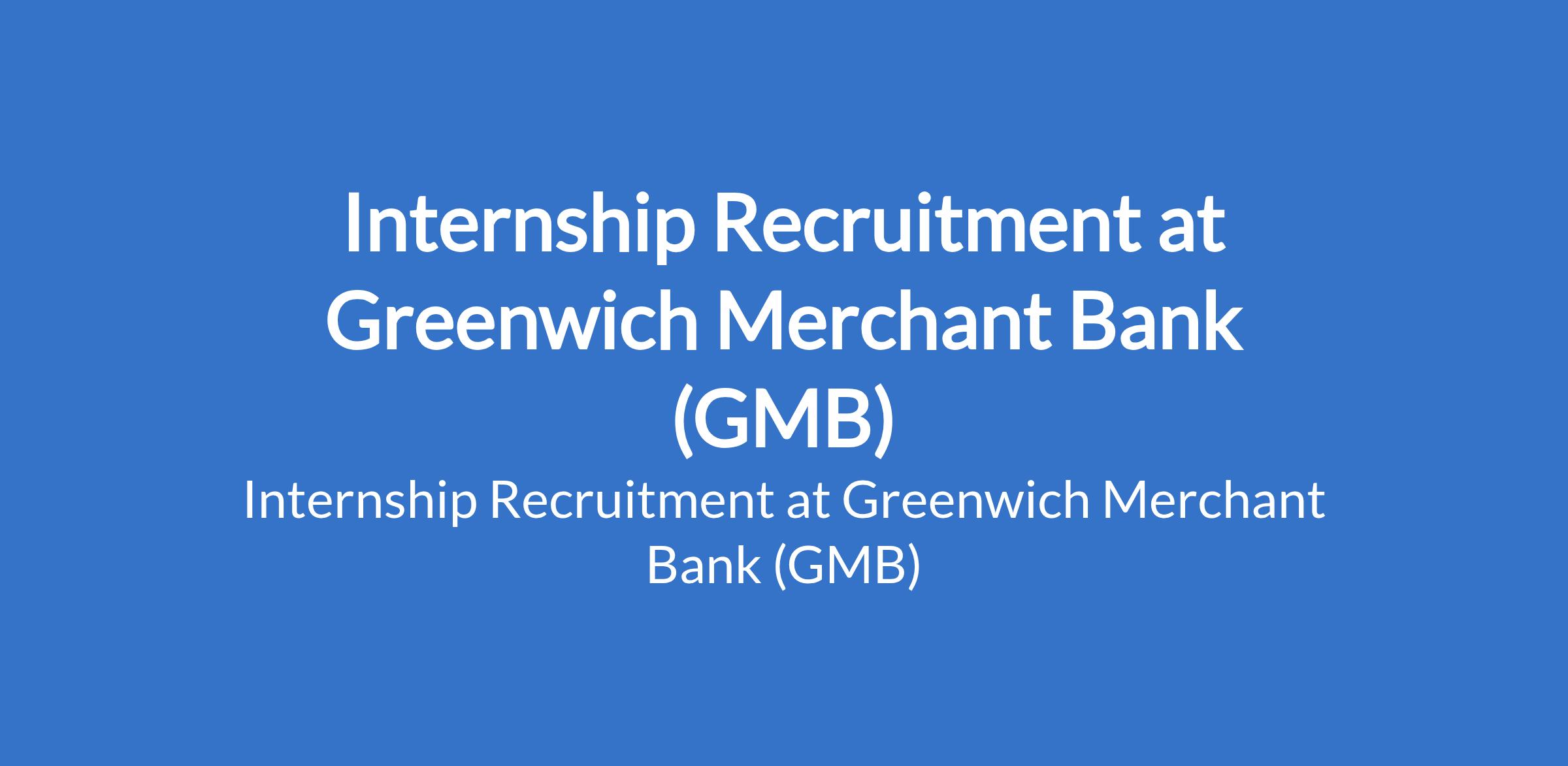 Internship Recruitment at Greenwich Merchant Bank (GMB)