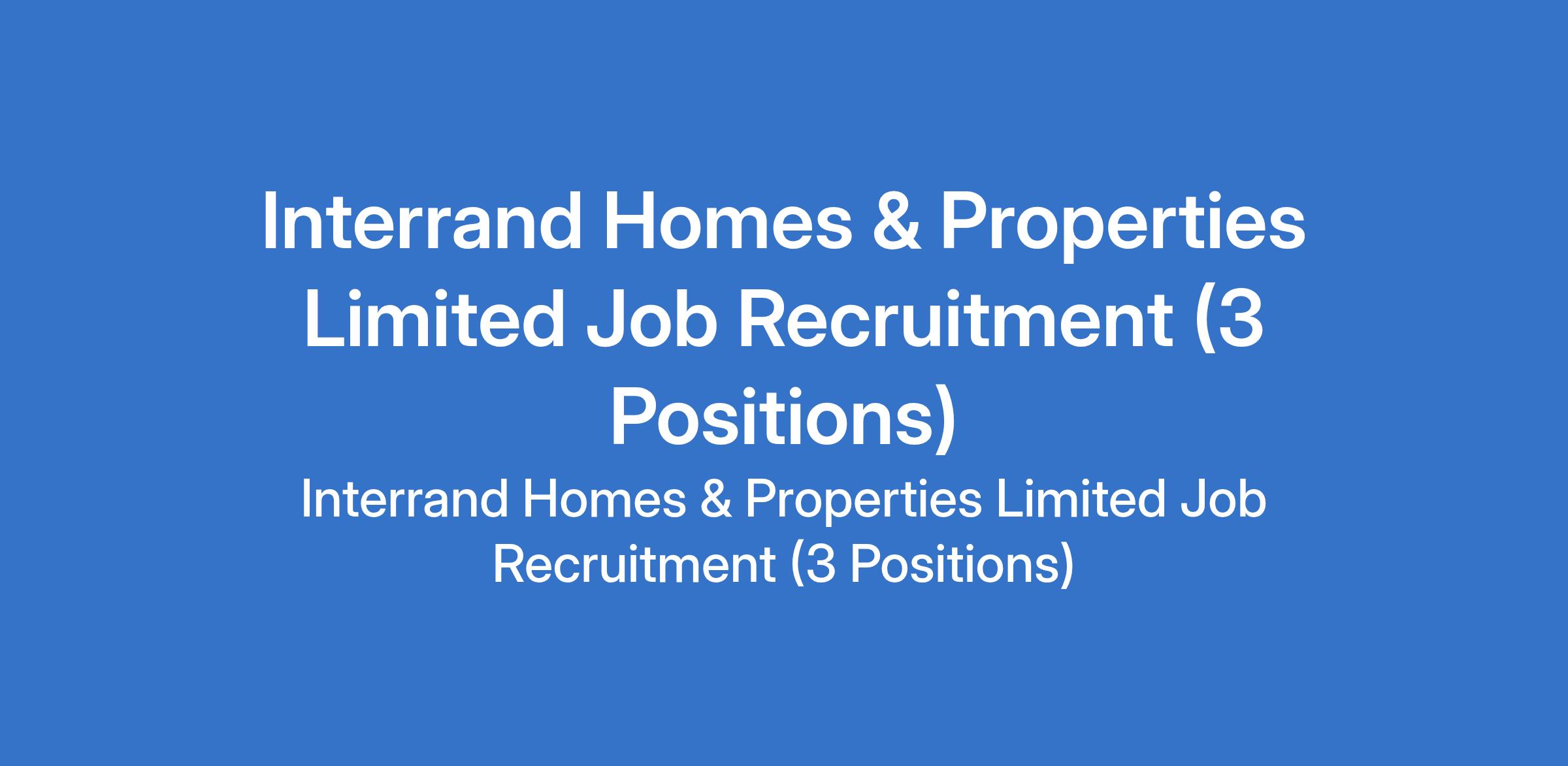 Interrand Homes & Properties Limited Job Recruitment (3 Positions)