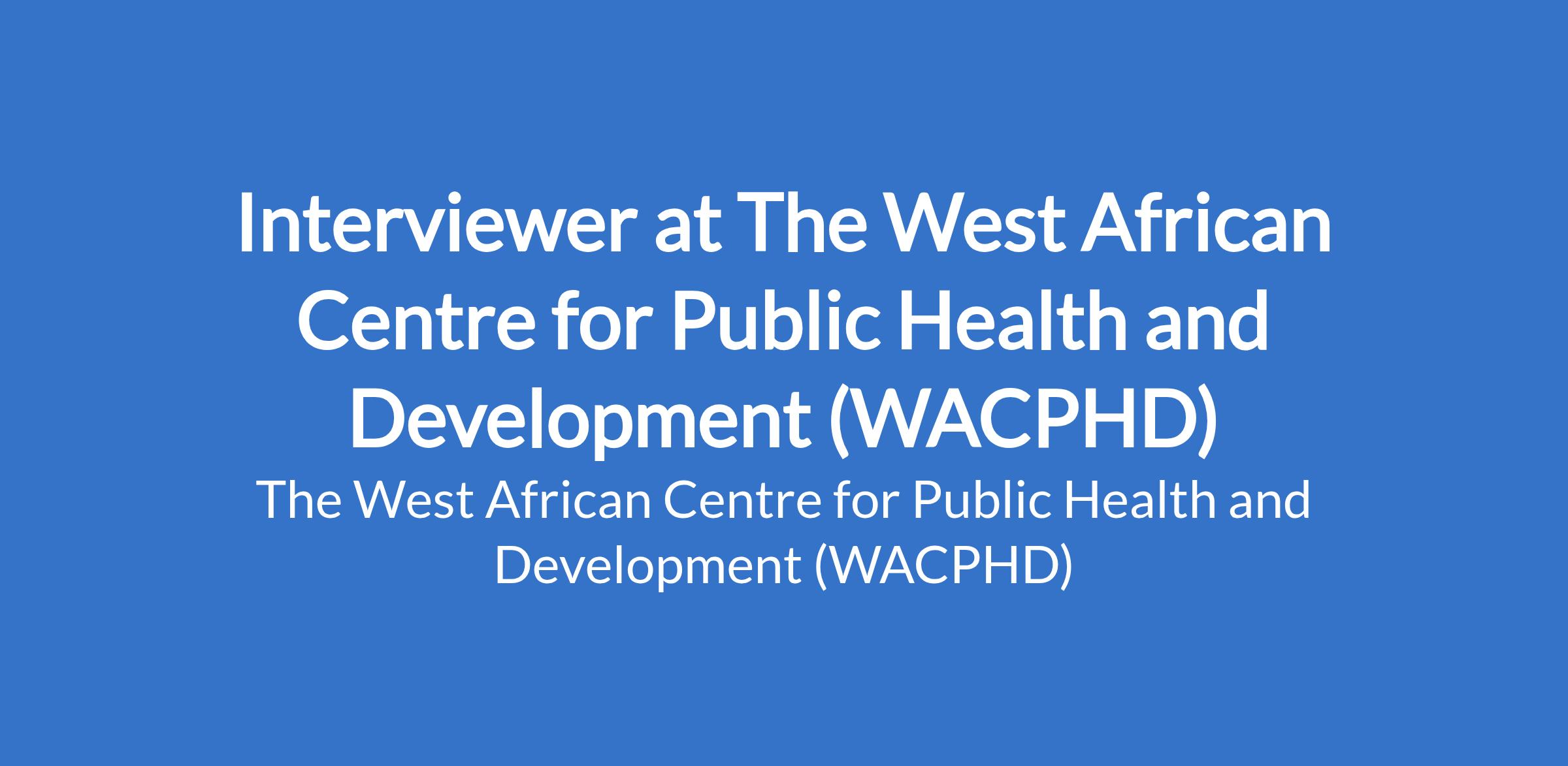 Previous experience working on WACPHD/IGPH projects is an added advantage