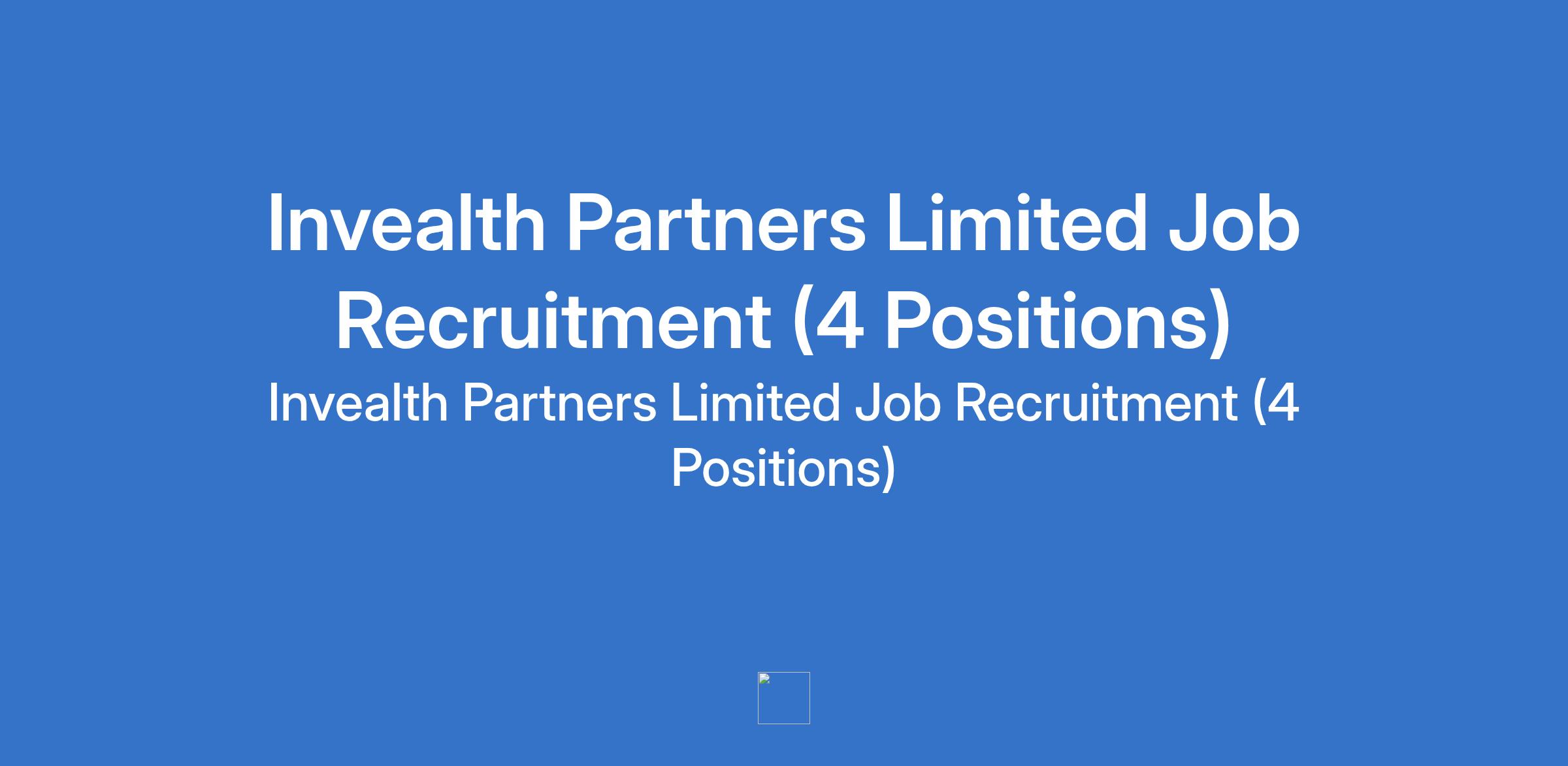 Invealth Partners Limited Job Recruitment (4 Positions)