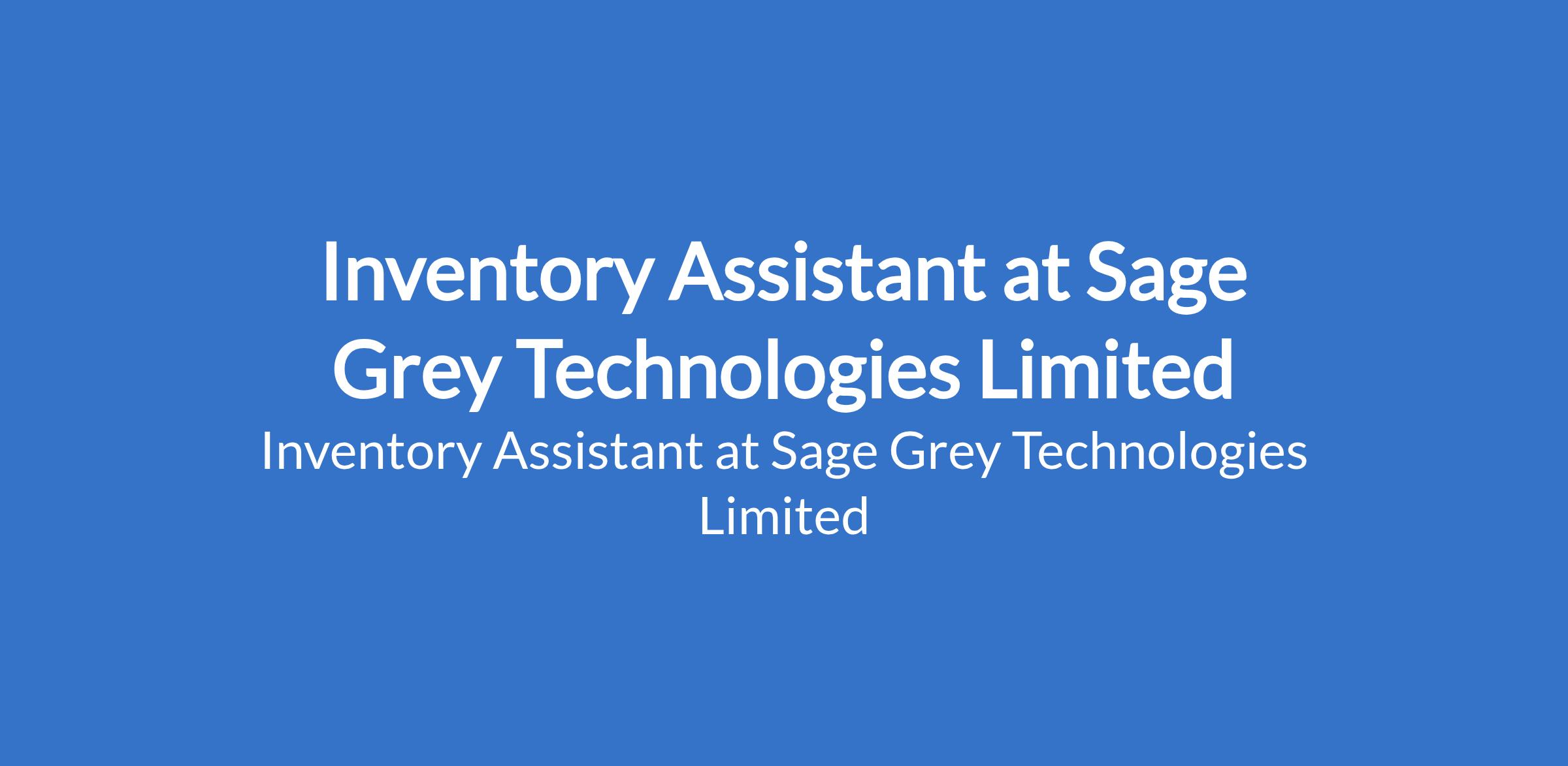 Sage Grey Technologies Limited is recruiting to fill the position of: Inventory Assistant. The position is located in Ajao Estate, Lagos State. Salary: N100,000 - N120,000 / month. Interested candidates should possess a Degree in Business, Finance, Economics, or related fields with 0 - 1 year experience.
