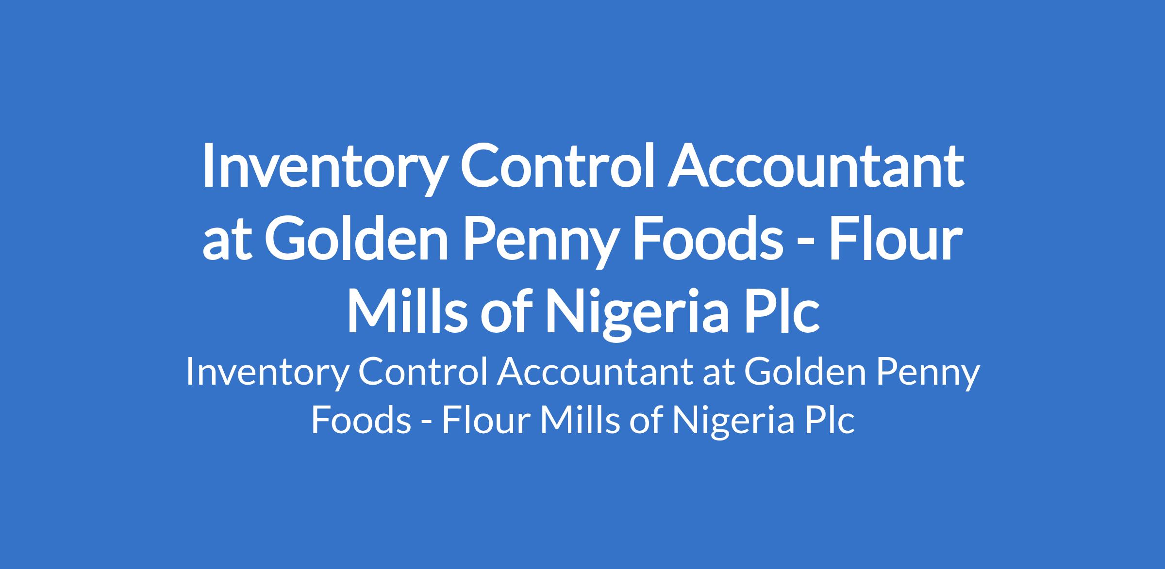 Flour Mills of Nigeria Plc - Our subsidiary, Golden Penny Foods is recruiting to fill the position of: Inventory Control Accountant. This position is located in Apapa, Lagos State. Interested candidates should possess a B.Sc. / HND in Accounting, Finance, Economics, or related Social Science discipline with a minimum of 5 years experience, with at least 3 years in manufacturing finance or inventory control.
