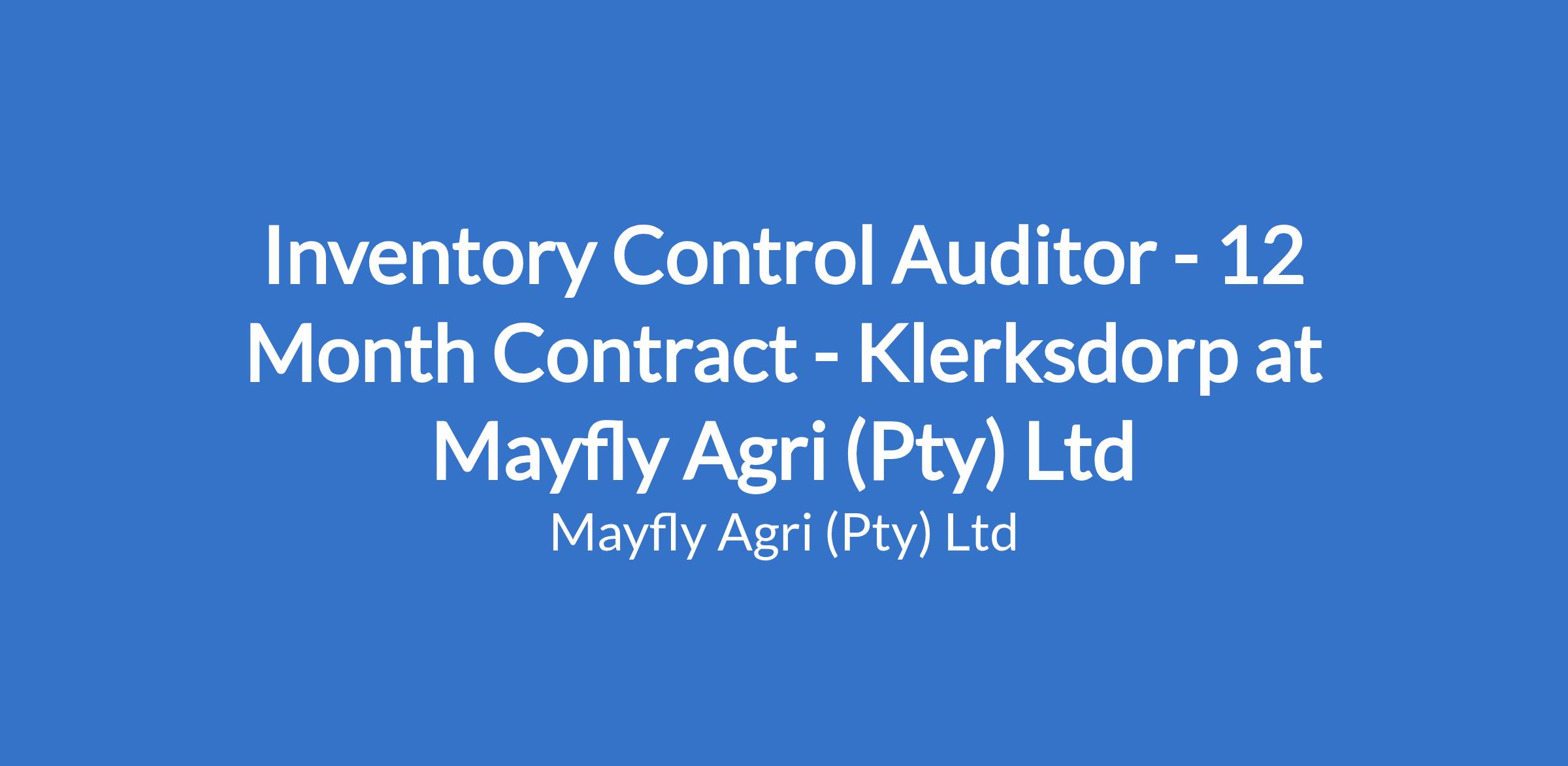Inventory Control Auditor - 12 Month Contract - Klerksdorp at Mayfly Agri (Pty) Ltd