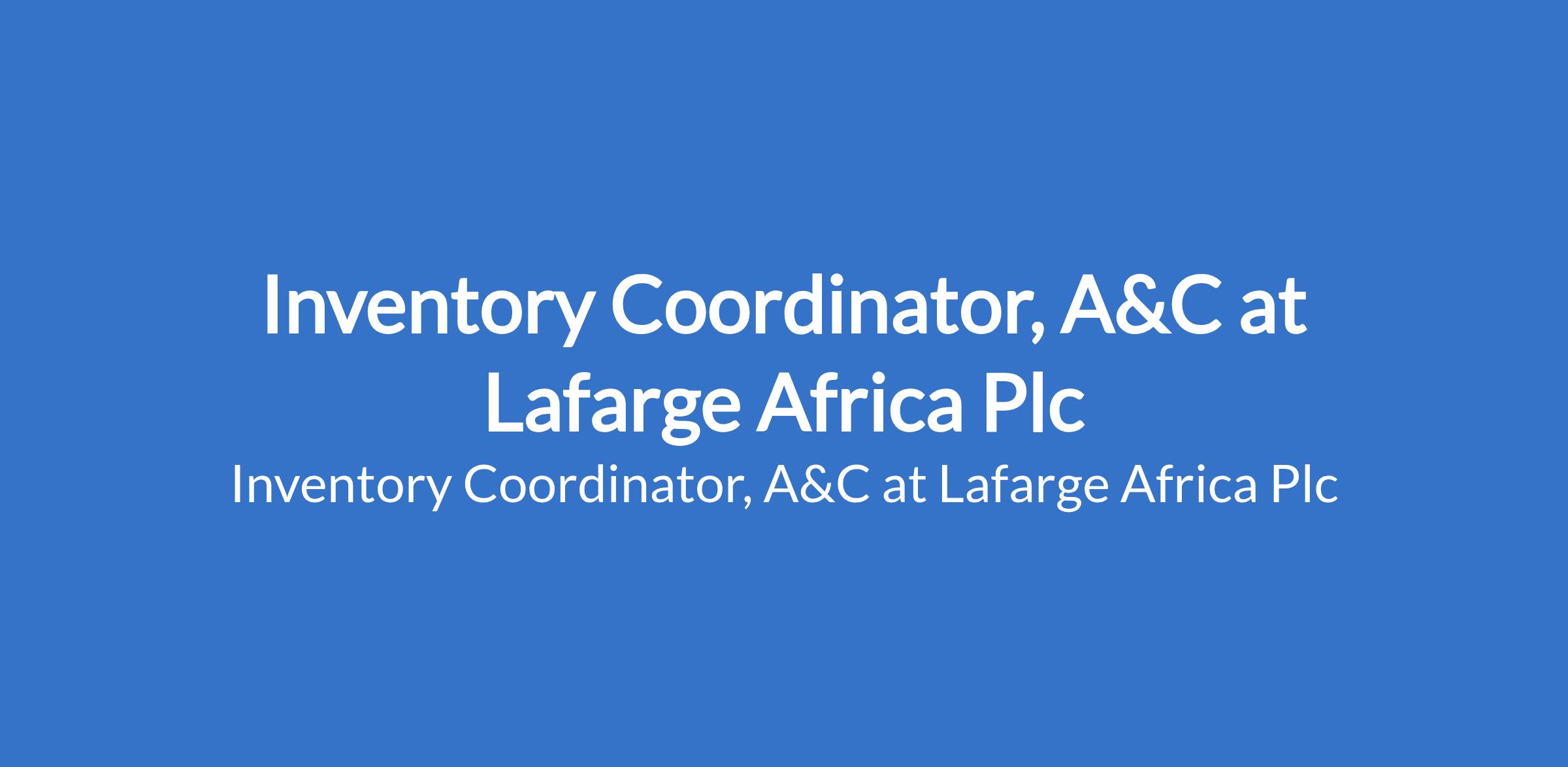 Lafarge Africa Plc is recruiting to fill the position of: Inventory Coordinator, A&C. The position is located in Oregun, Lagos State. Interested candidates should possess a Degree in Mathematics, Accounting or a similar subject with a minimum of 3 years experience running commercial / Industrial stores.