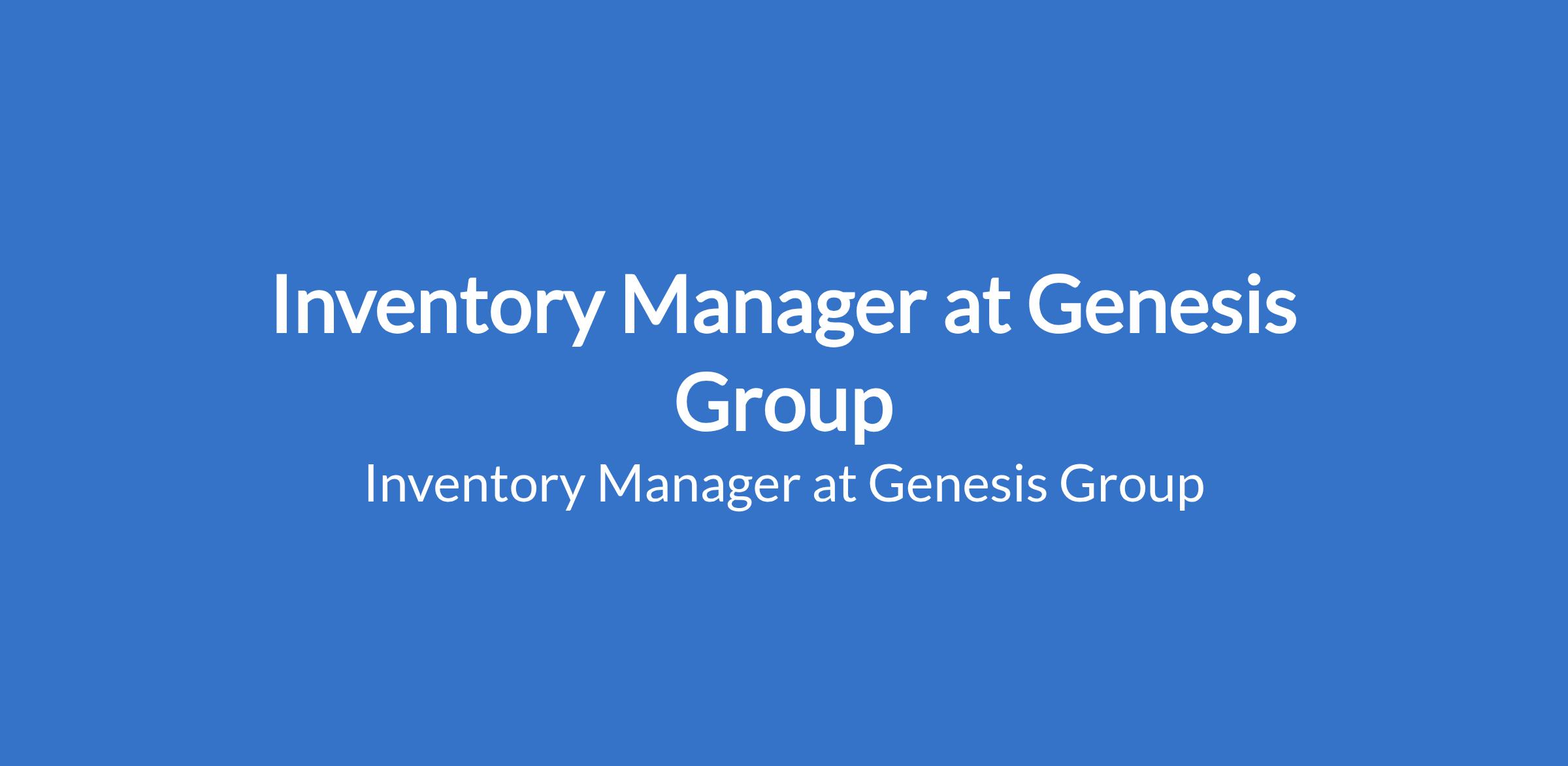 Inventory Manager at Genesis Group