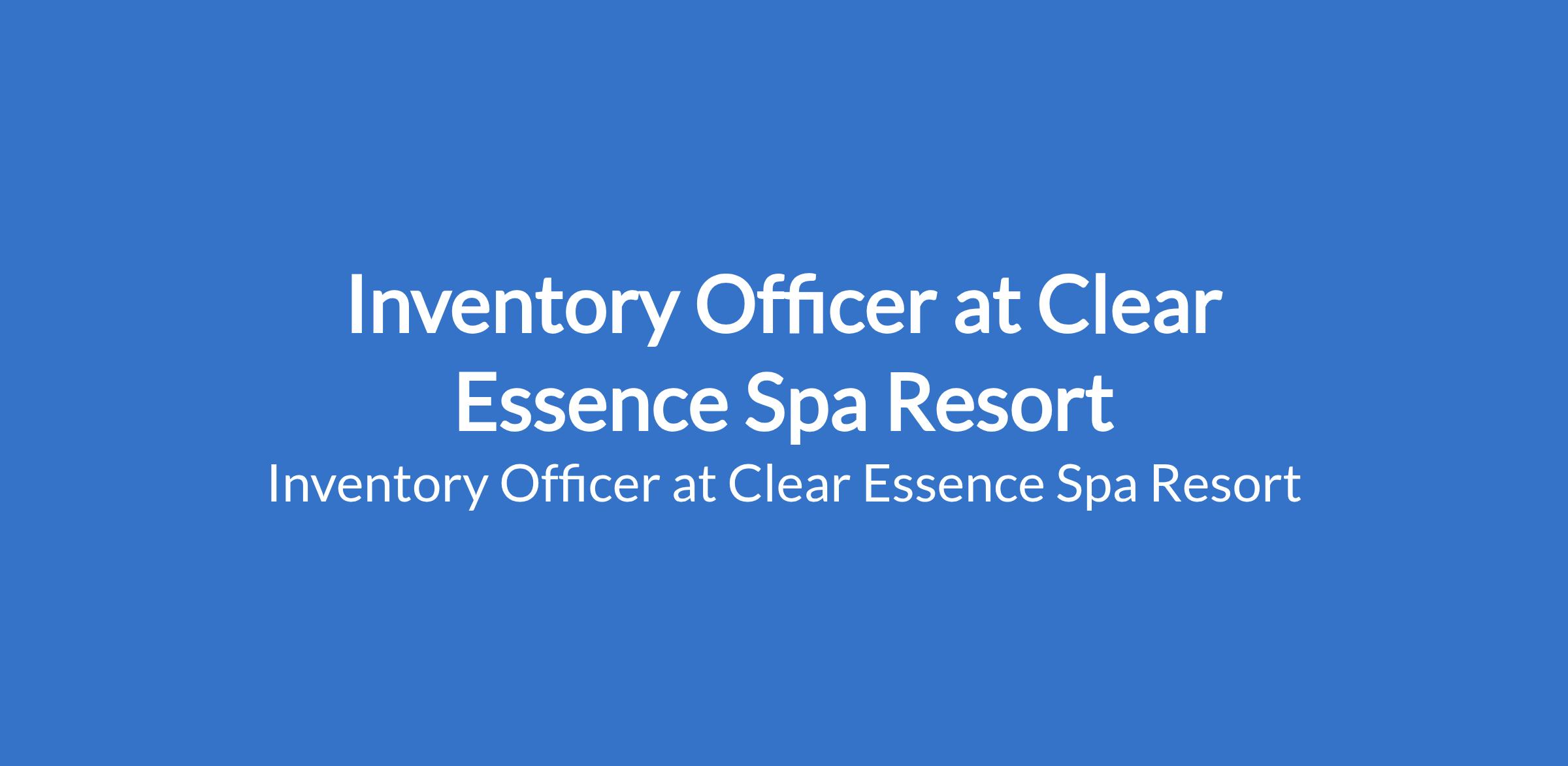 Inventory Officer at Clear Essence Spa Resort