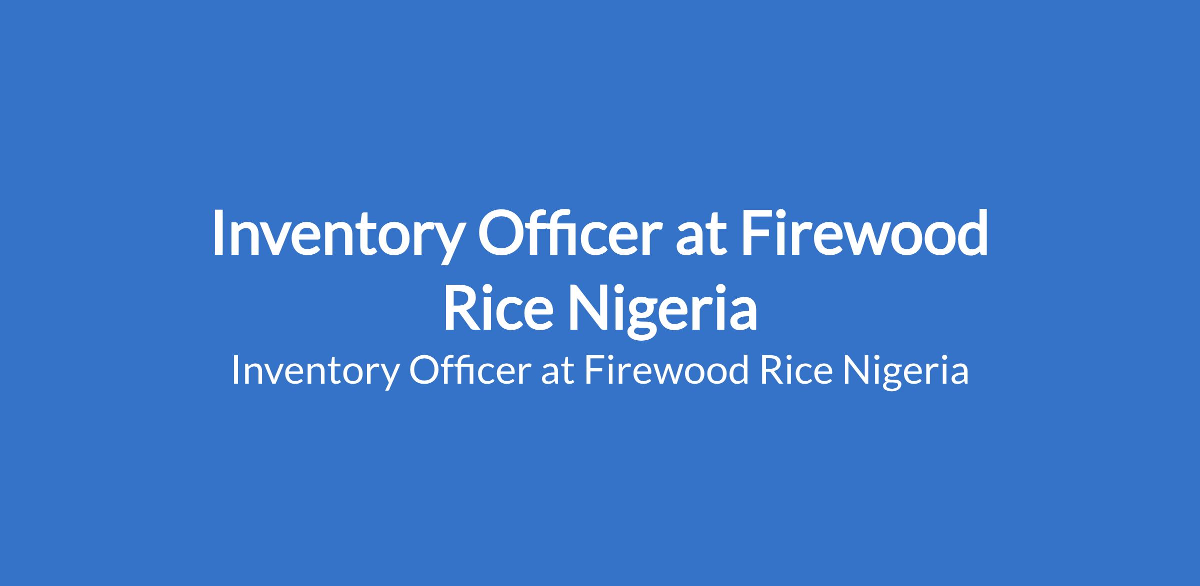 Firewood Rice Nigeria is recruiting to fill the position of: Inventory Officer. The position is located in Lagos State. Salary: N100,000 - N150,000 / month. Interested candidates should possess a B.Sc. / HND from reputable institution with 2 - 4 years experience.