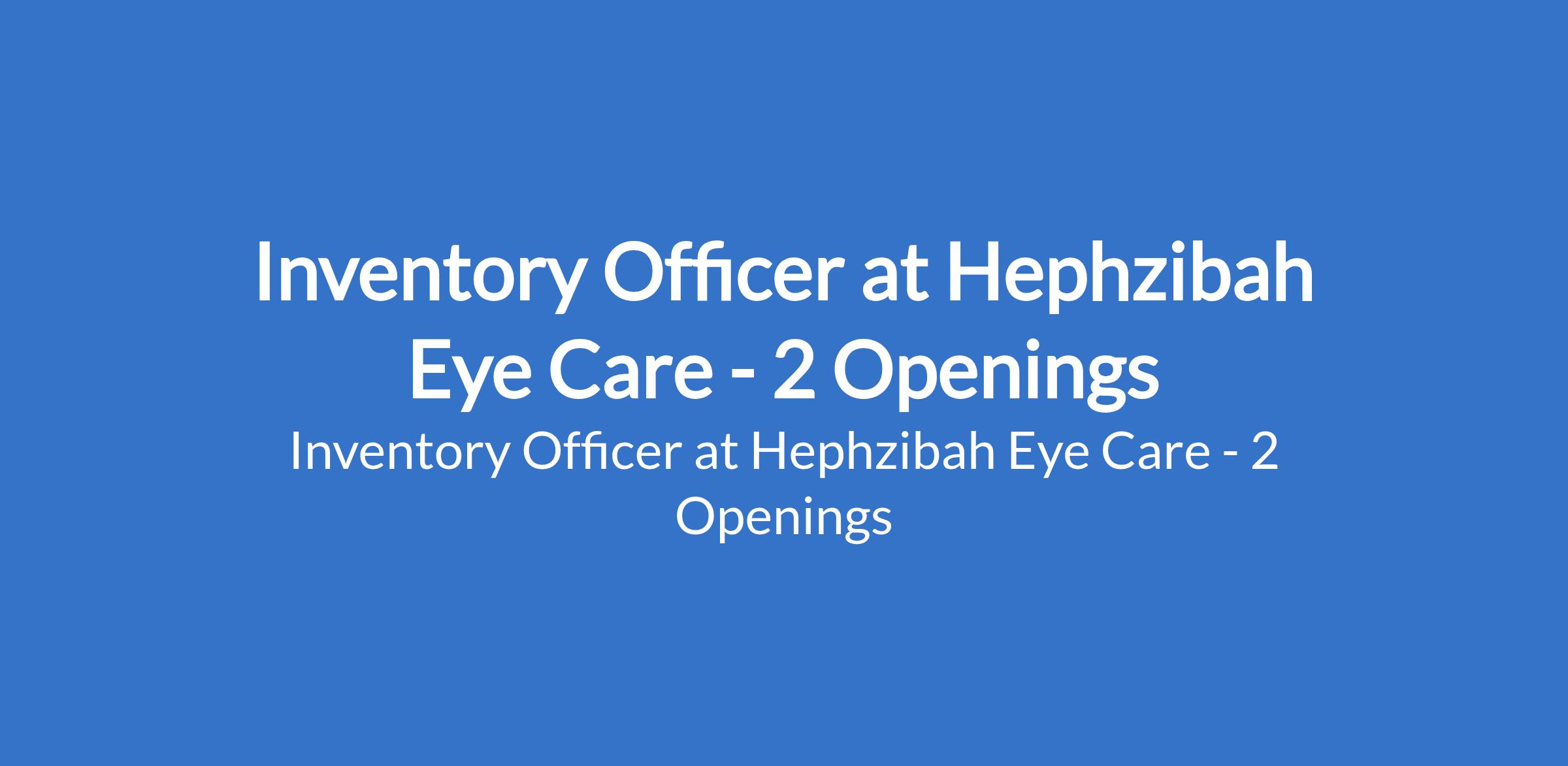 Hephzibah Eye Care is recruiting to fill the position of: Inventory Officer. The position is located in Surulere and Festac, Lagos State. Salary: N120,000 - N150,000 per month. Interested candidates should possess a Bachelors Degree in Supply Chain Management, Business Administration, Commerce, or a related field with 1 3 years of experience in inventory or store management (healthcare experience preferred).