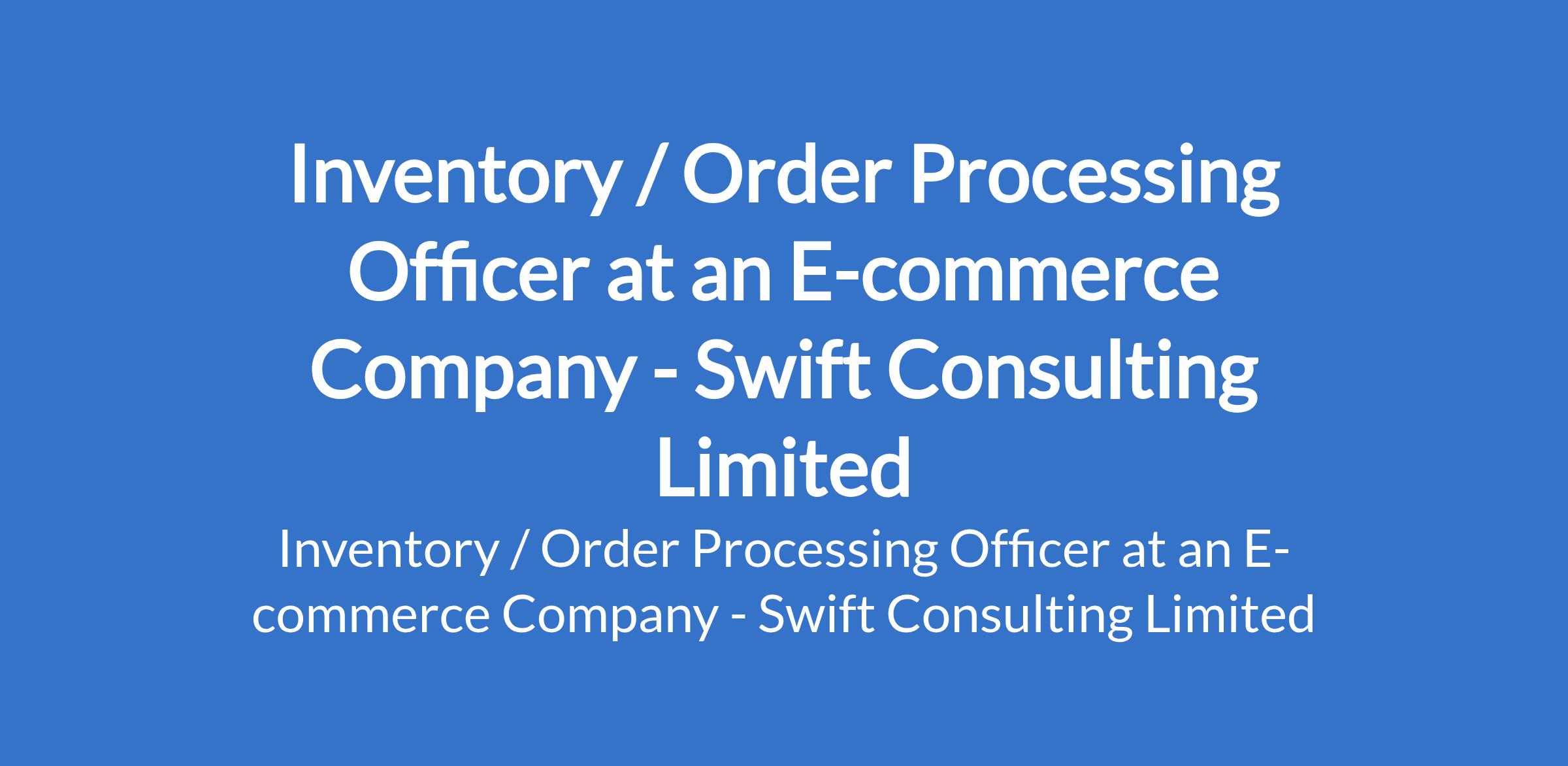 Swift Consulting Limited - Our client, an E-commerce Company is recruiting to fill the position of: Inventory / Order Processing Officer. The position is located in Anambra State. Interested candidates should possess an HND / B.Sc Degree in any relevant field.