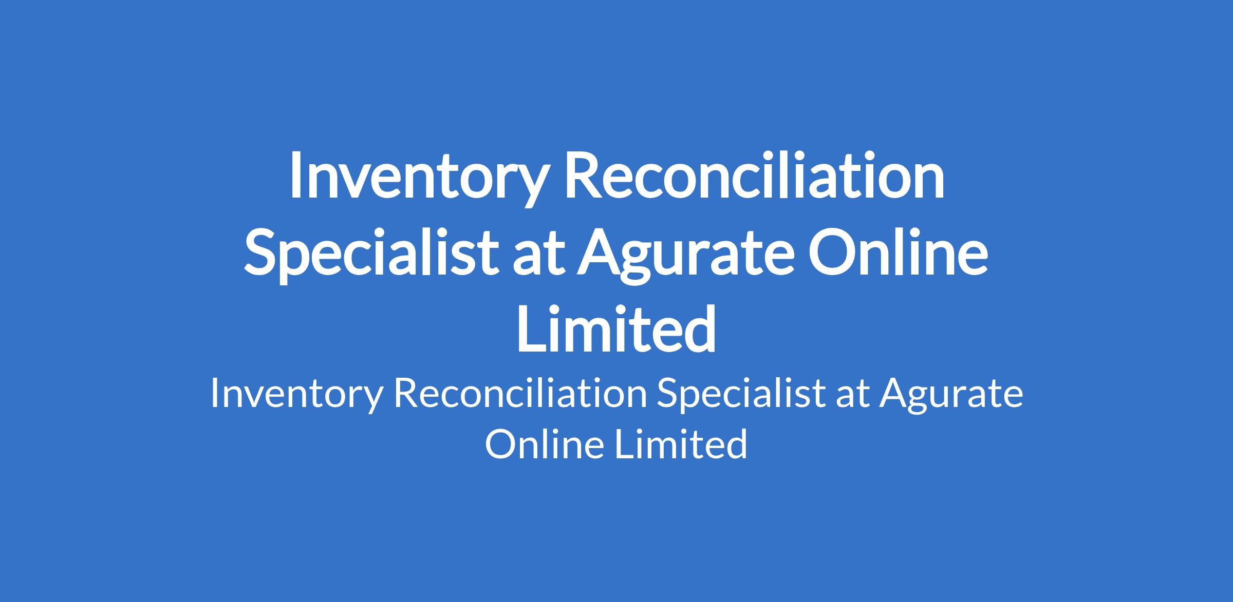Agurate Online Limited is recruiting to fill the position of: Inventory Reconciliation Specialist. The position is located in Lekki Phase 1, Lagos State. Salary: N250,000 / month. Interested candidates should possess a Bachelors Degree in Accounting, Supply Chain, Business Administration, or related fields with 3 - 5 years of experience in inventory control, warehouse accounting, or stock audit.