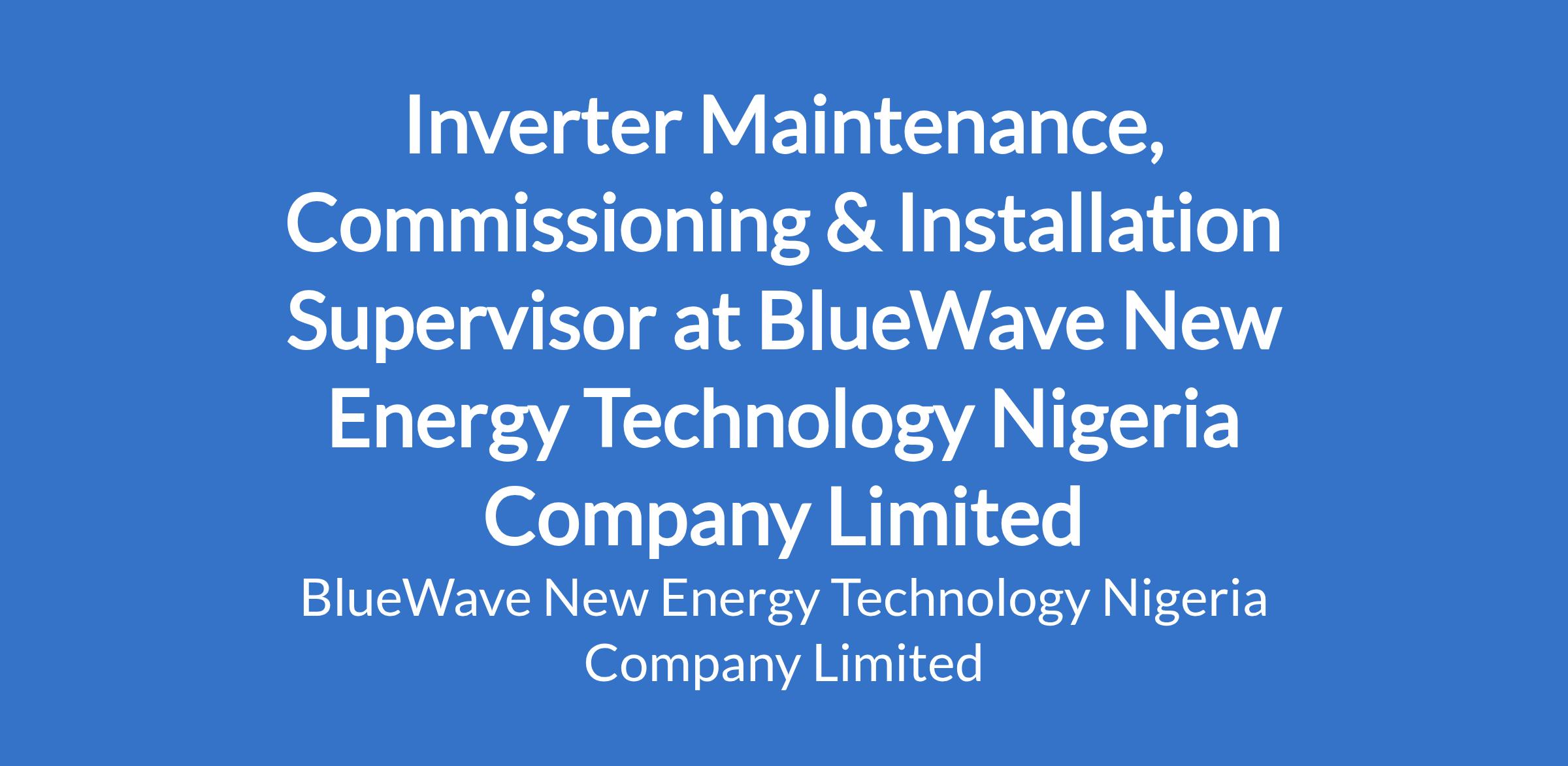 Inverter Maintenance, Commissioning & Installation Supervisor → Head Of Projects - Solar Minigrids & EPC Position.