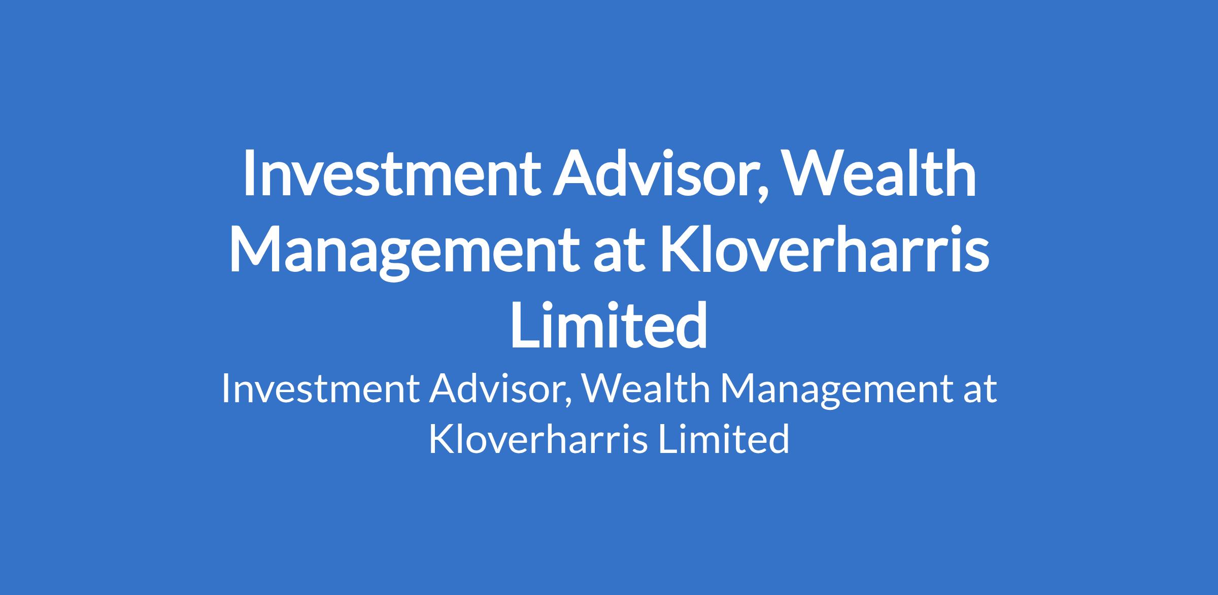Kloverharris Limited is recruiting to fill the position of: Investment Advisor, Wealth Management. The position is located in Ikoyi, Lagos State. Interested candidates should possess a BSc Degree in Finance, Economics, or related fields and an MBA, CFA, CIMA, or CFP designation or equivalent qualification.