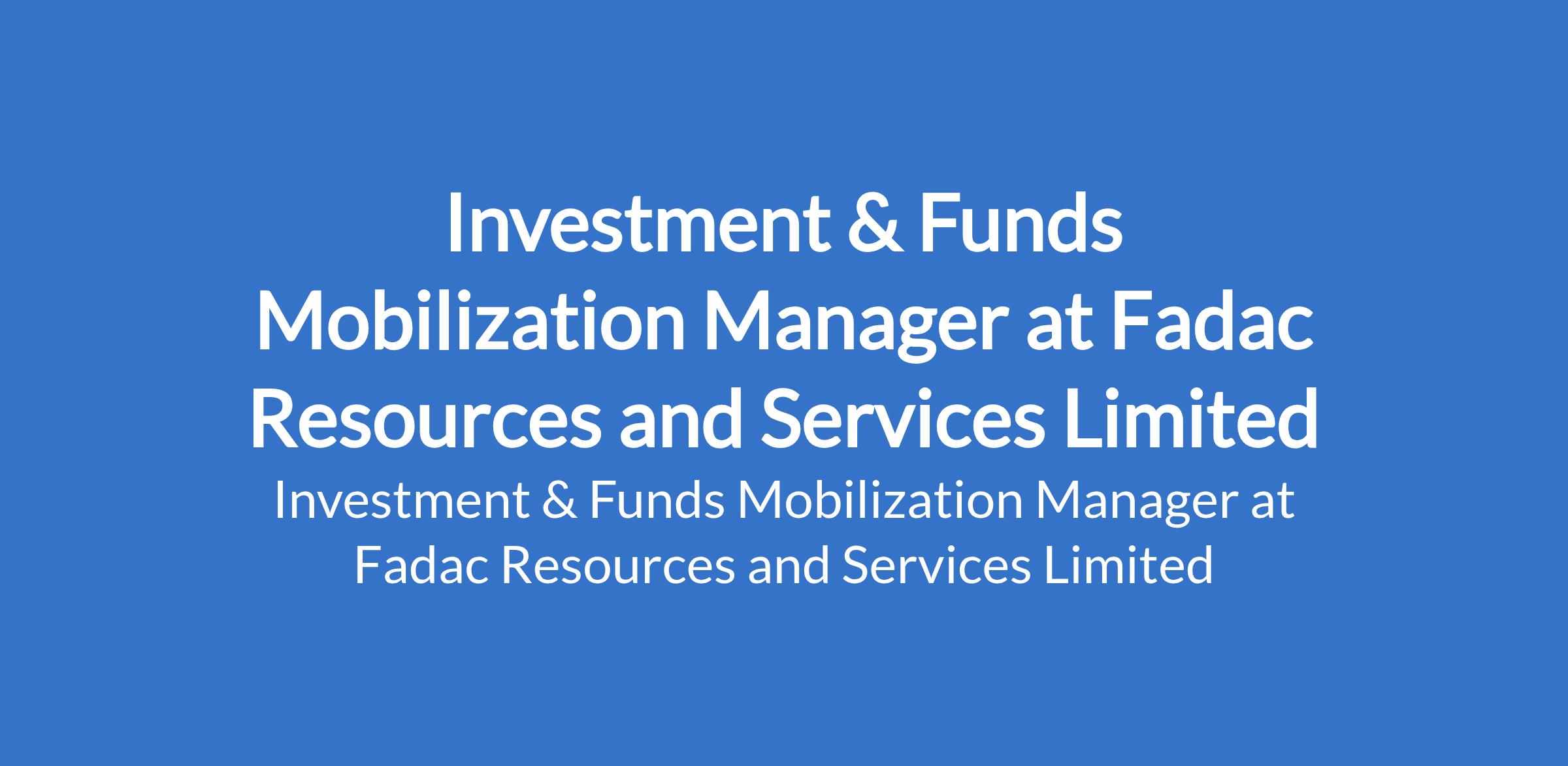 Fadac Resources and Services Limited is recruiting to fill the position of: Investment & Funds Mobilization Manager. The position is located in Ikoyi, Lagos State. Interested candidates should possess a Bachelors Degree in any field with 3 - 6 years working experience in the financial services industry focusing in a market-facing financial treasury role.