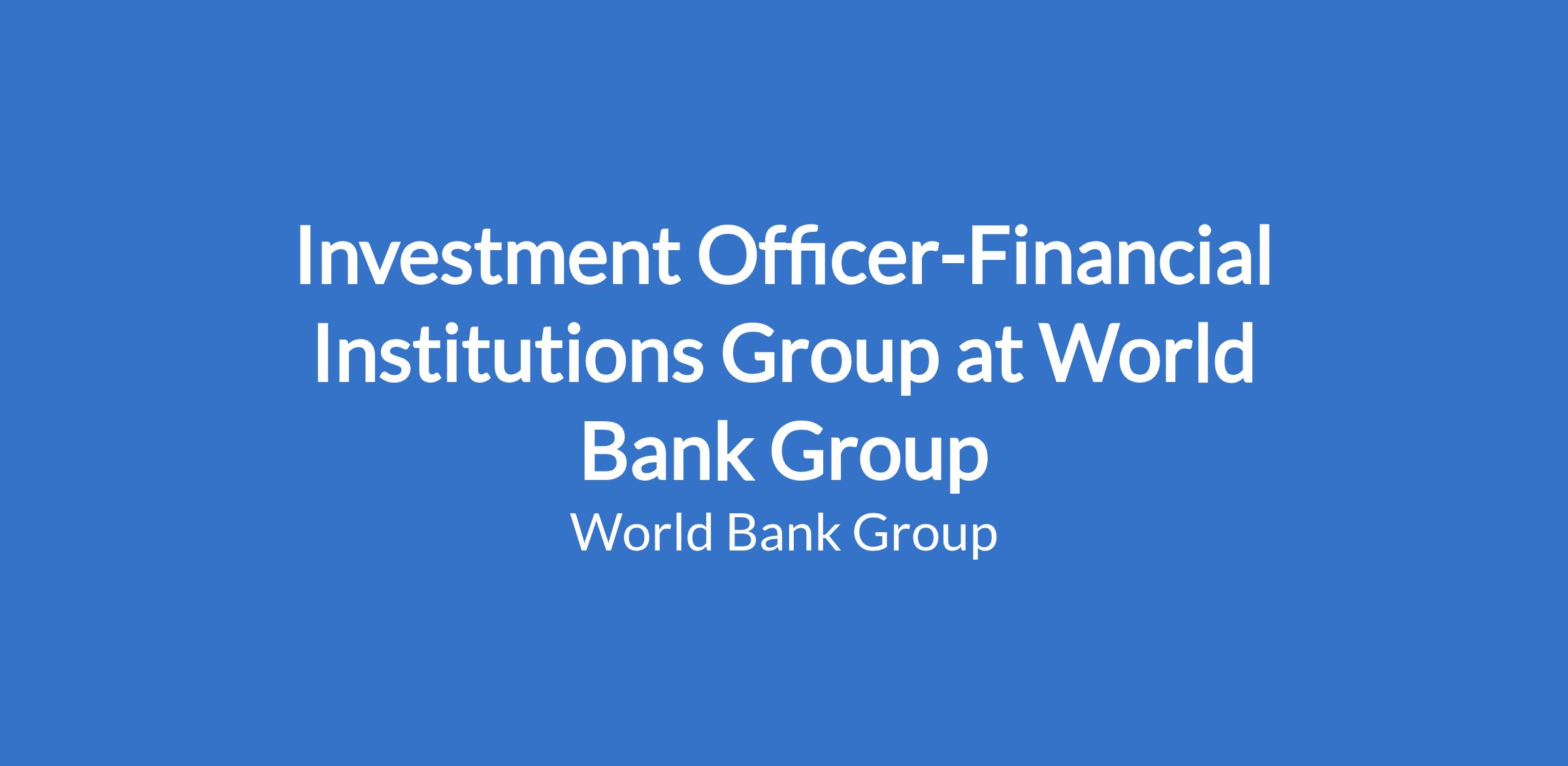 Investment Officer-Financial Institutions Group at World Bank Group