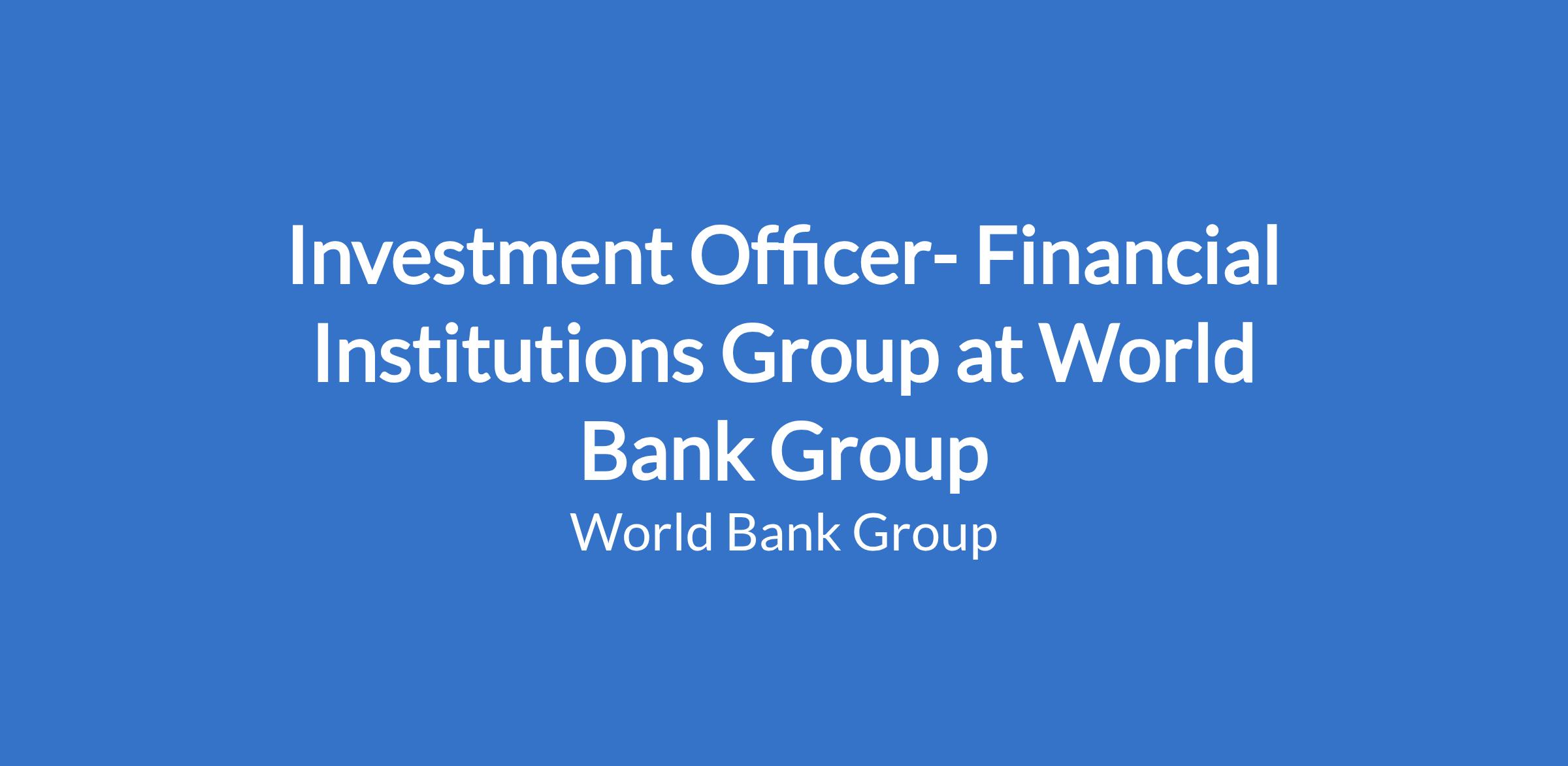 Investment Officer- Financial Institutions Group at World Bank Group