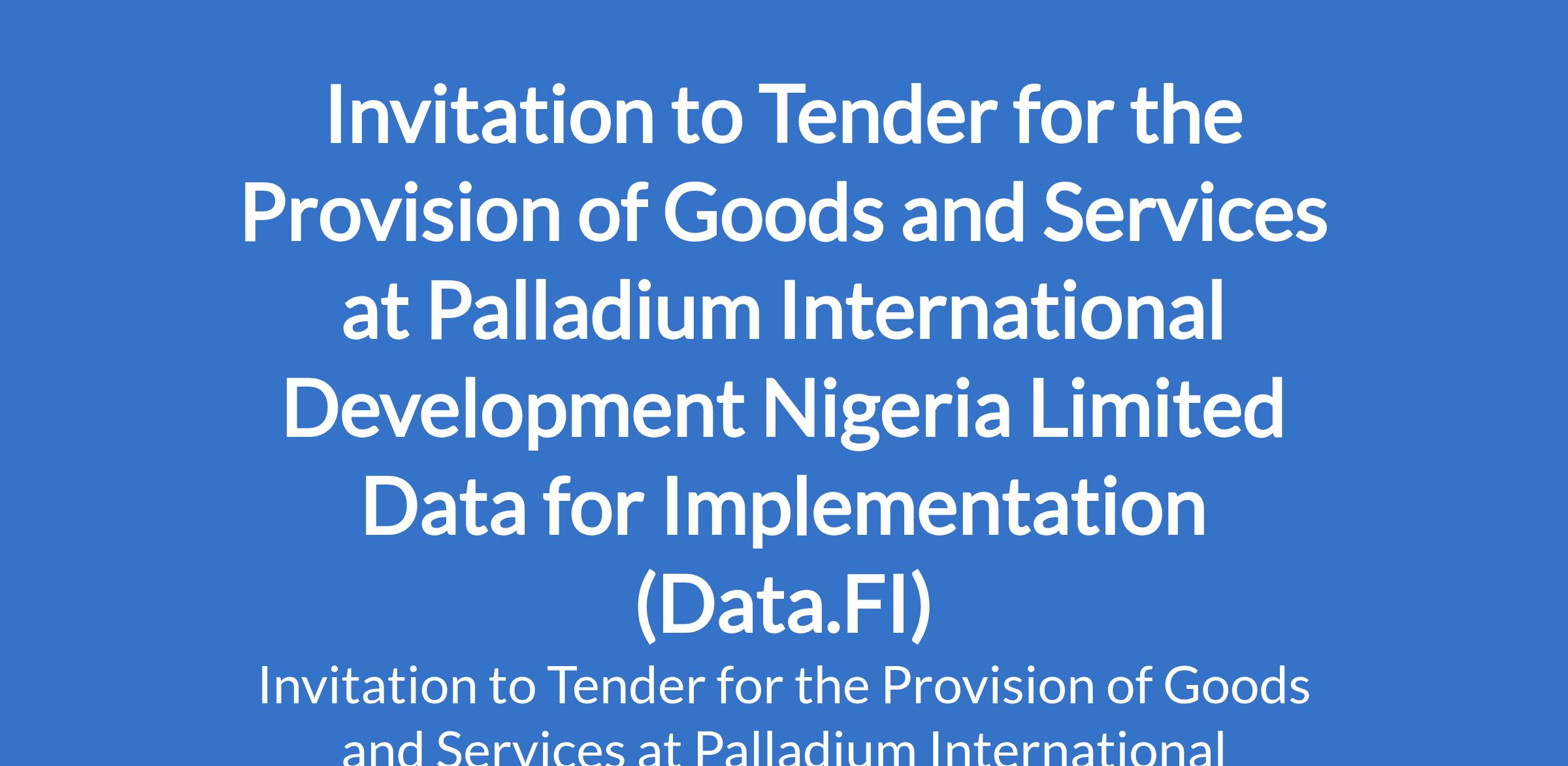 Palladium International Development Nigeria Limited Data for Implementation (Data.FI) invites qualified, reputable, and experienced vendors / suppliers registered in Nigeria to submit bids for the supply, delivery, and installation of equipment and infrastructure upgrades required for the establishment and strengthening of TB Integrated Situation Rooms (SRs) across Oyo, Bauchi, and Nasarawa States. Interested vendors / suppliers should possess relevant qualifications.