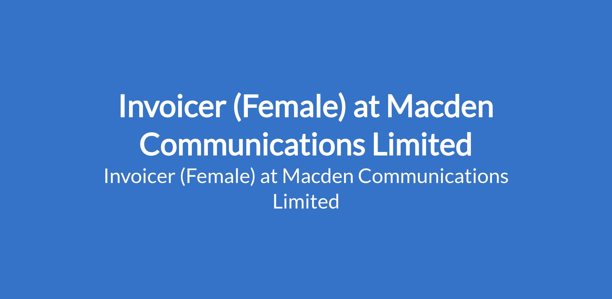 Macden Communications Limited is recruiting to fill the position of: Invoicer (Female). The position is located in Oshodi, Lagos State. Salary: N75,000 - N80,000 per month. Interested candidates must be knowledgeable in business and should be able to use computer software.