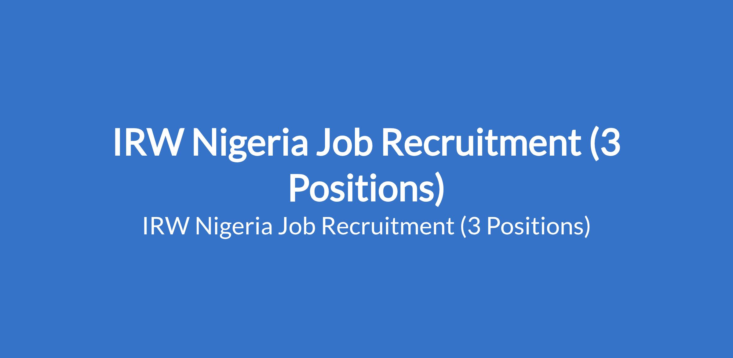 IRW Nigeria Job Recruitment (3 Positions)