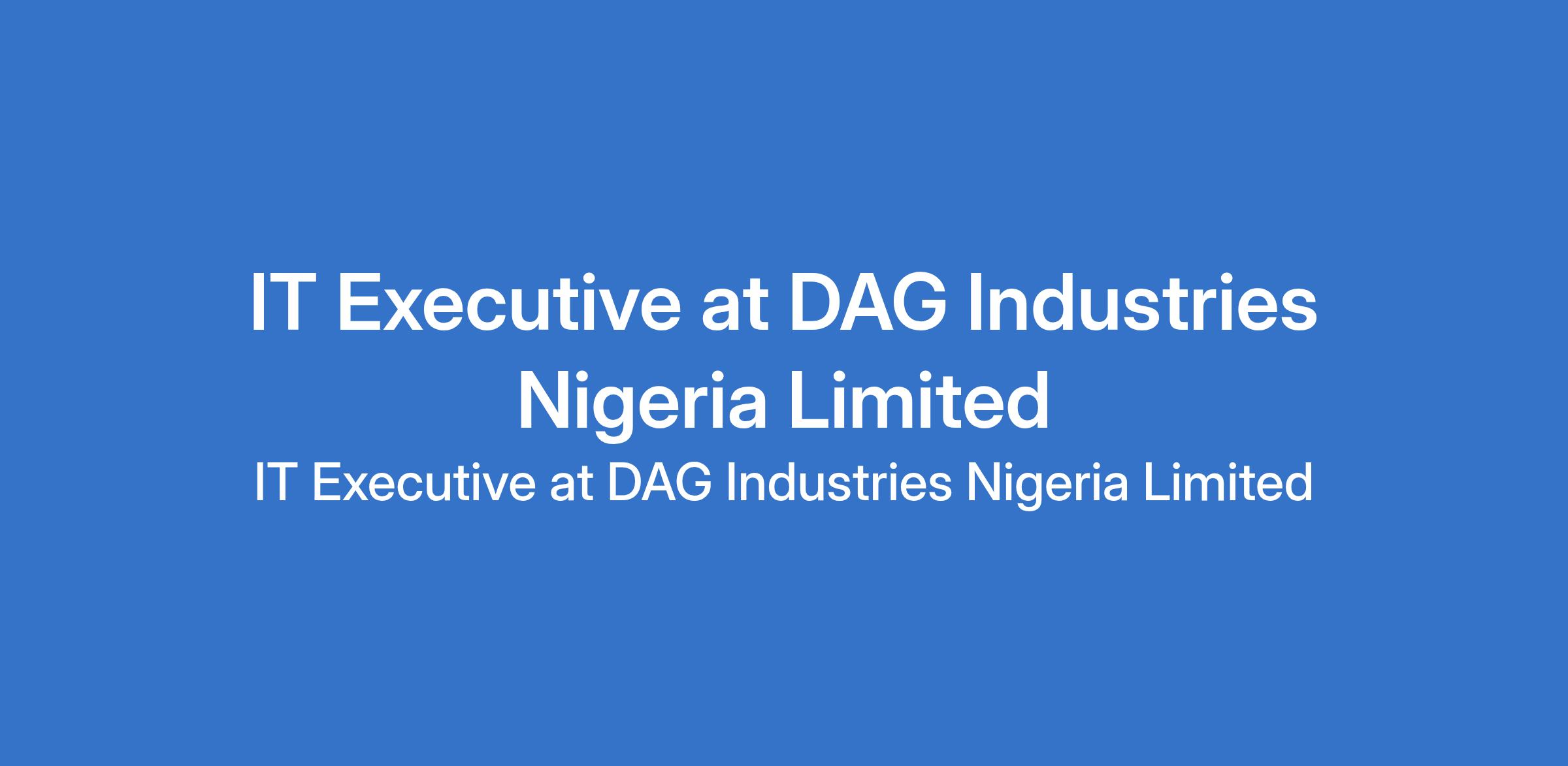 DAG Industries Nigeria Limited is recruiting to fill the position of: IT Executive. The position is located in Ikeja, Lagos State. Interested candidates should possess a Diploma or Bachelors Degree in Information Technology, Computer Science, IT Engineering, or related field with 13 years of experience in IT support or a similar role.