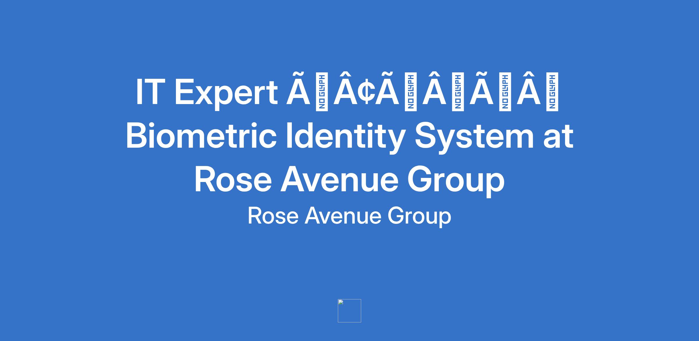 IT Expert âÃÂàBiometric Identity System at Rose Avenue Group