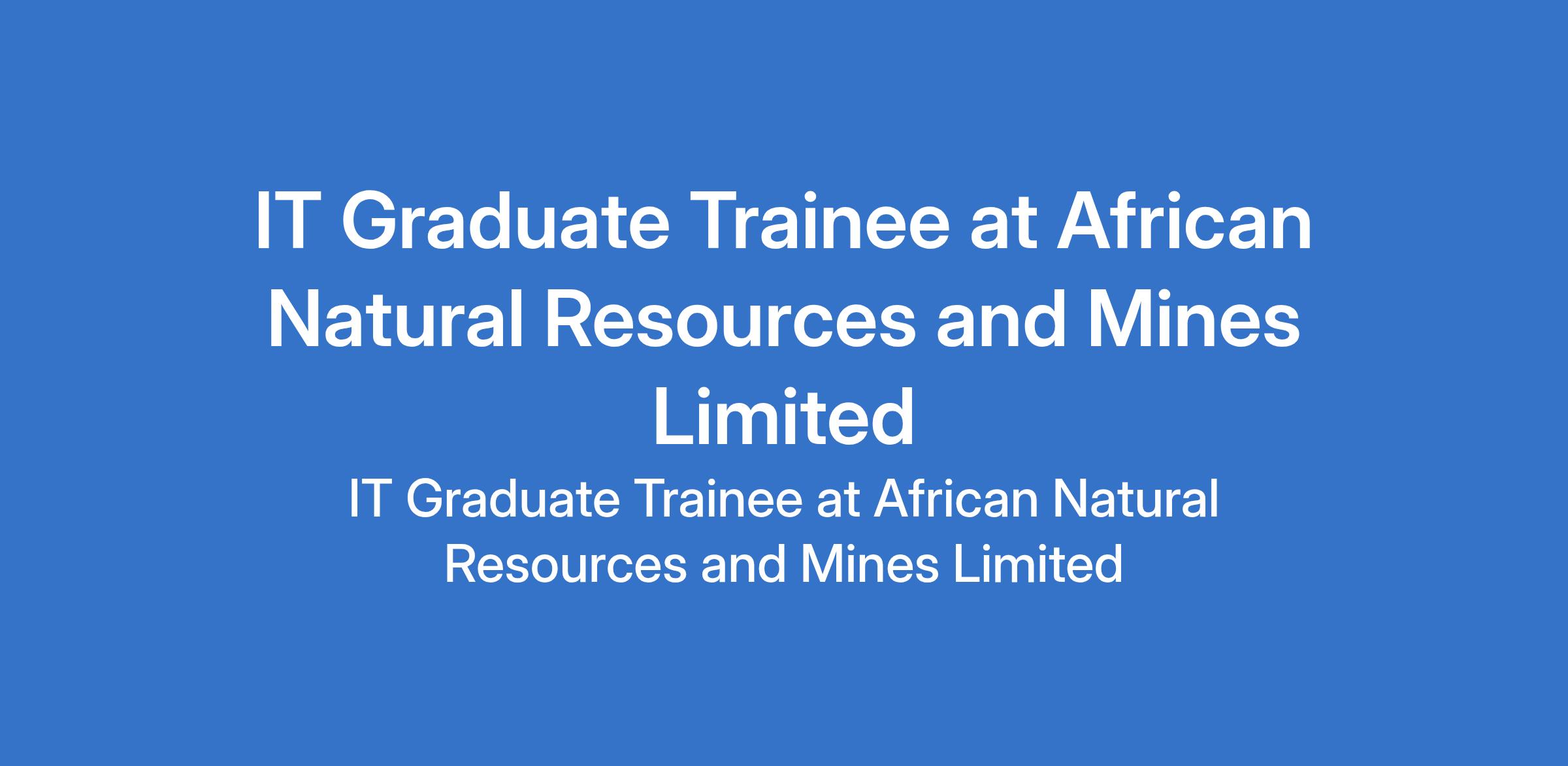 African Natural Resources and Mines Limited is recruiting to fill the position of: IT Graduate Trainee. The position is located in Gujeni, Kaduna State. Interested candidates should possess a Bachelors Degree or HND in Computer Science, Information Technology, or related fields with basic knowledge of Windows OS, MS Office, and computer hardware.