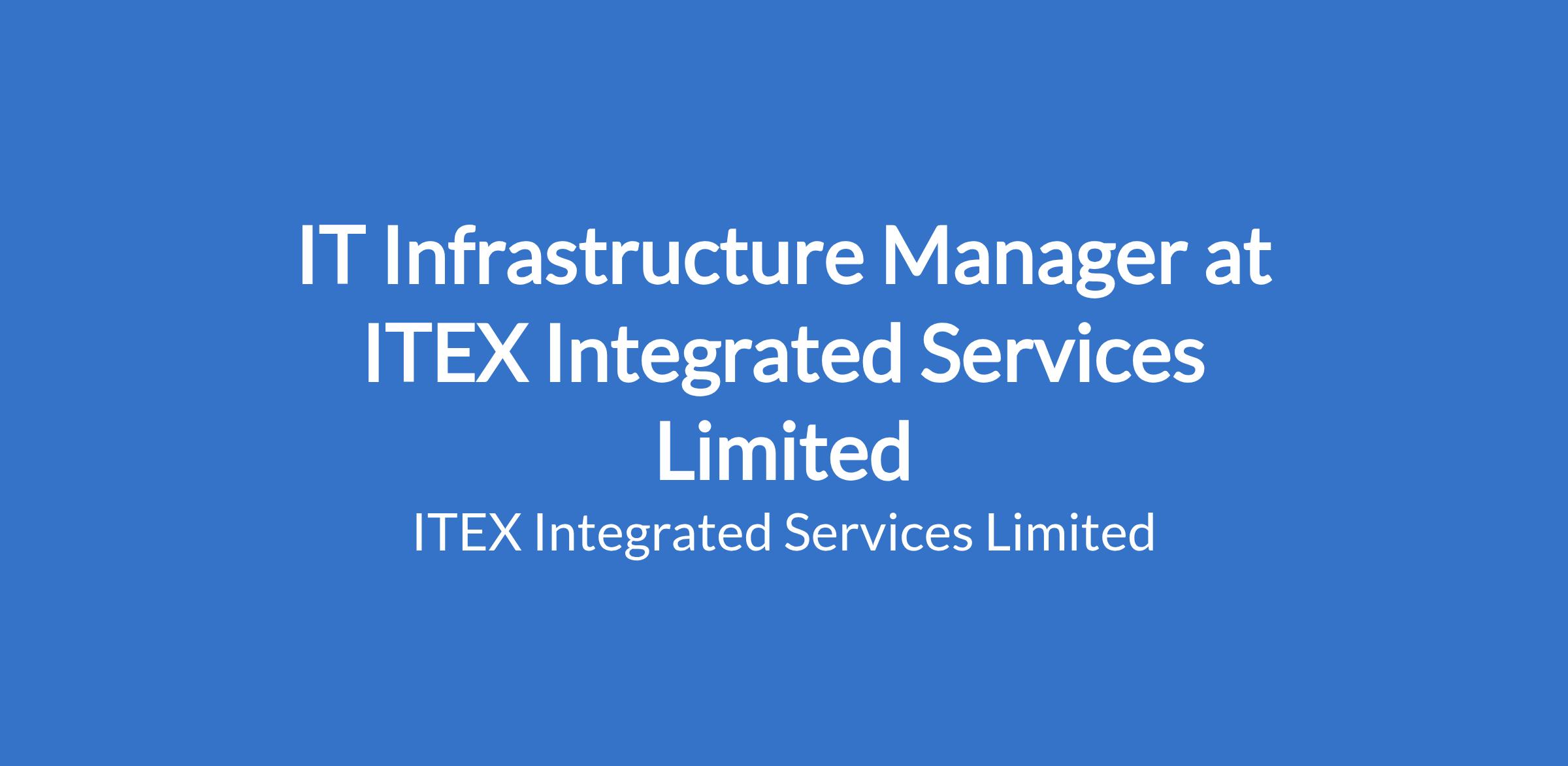 IT Infrastructure Manager at ITEX Integrated Services Limited