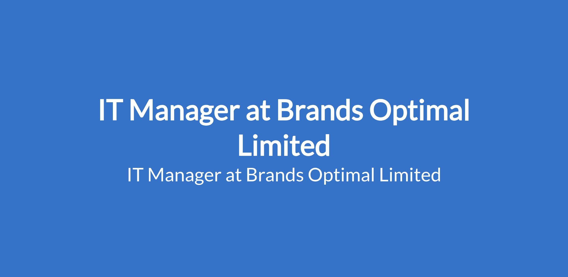 Brands Optimal Limited is recruiting to fill the position of: IT Manager. The position is located in Lagos State. Interested candidates should possess a Bachelors Degree in Computer Science, Information Technology, or related field (Masters Degree is an added advantage).with a minimum of 3 years progressive IT experience.