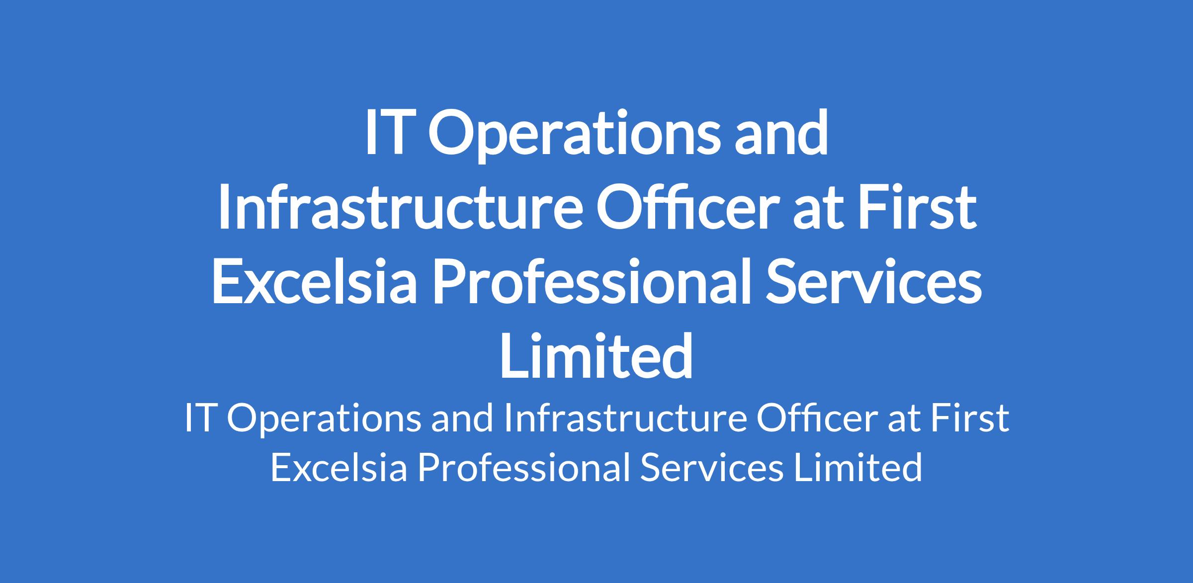 First Excelsia Professional Services Limited - Our client in the Banking industry is recruiting to fill the position of: IT Operations and Infrastructure Officer. The position is located in Surulere, Lagos State. Salary: N4,000,000 - N5,000,000 annually. Interested candidates should possess a Bachelors Degree or HND qualification in Computer Science, Information Technology, or a related field with 2 - 5 years experience in IT operations, infrastructure, or systems support.