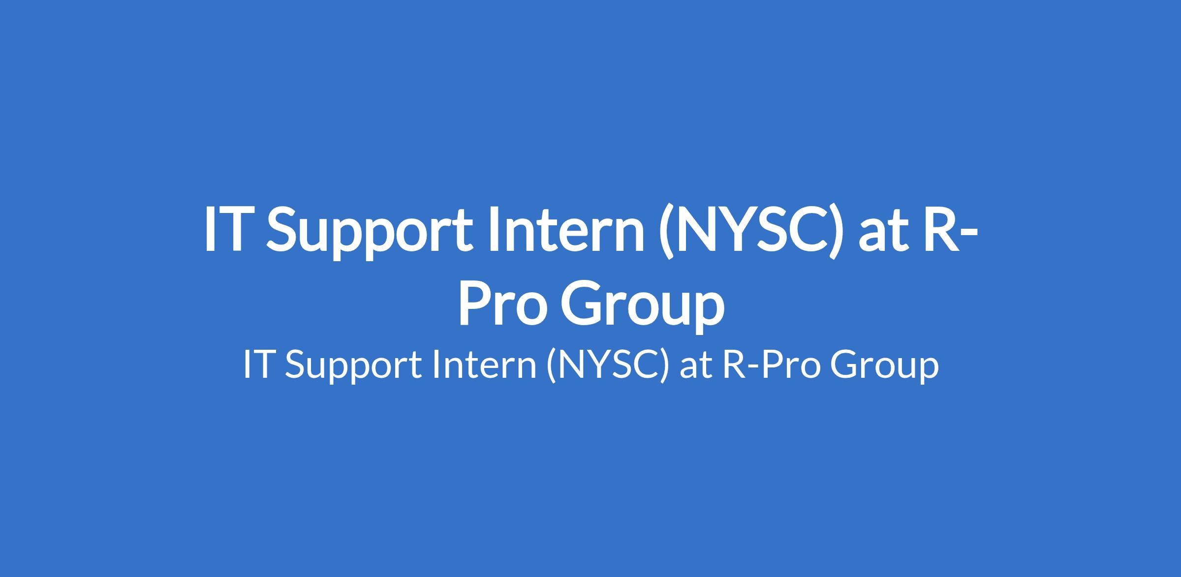 R-Pro Group is recruiting to fill the position of: IT Support Intern (NYSC). The position is located in Ajah / Sangotedo, Lagos State. Salary: N80,000 monthly. Interested candidates should possess relevant qualifications and experience.