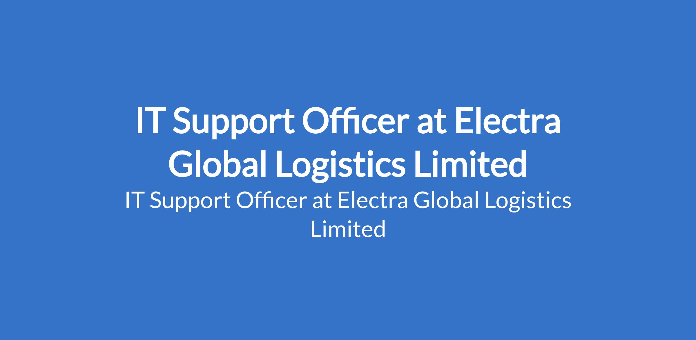 Electra Global Logistics Limited is recruiting to fill the position of: IT Support Officer. The position is located in Oregrun, Ikeja - Lagos State. The ideal candidate will provide first-line technical support for all hardware, software, and network-related issues. Interested candidates should have 24 years experience in IT support, system administration, or technical support roles.