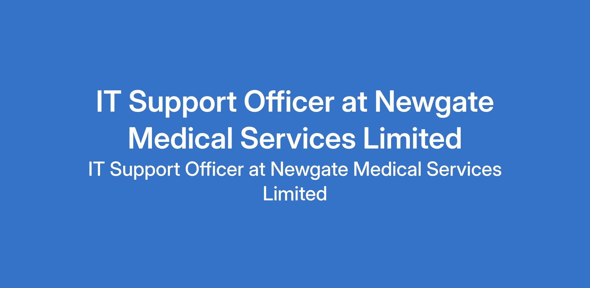 Newgate Medical Services Limited is recruiting to fill the position of: IT Support Officer. The position is located in Ikorodu, Lagos State. Salary: N100,000 - N150,000 monthly. Interested candidates should possess a relevant qualifications with a minimum of 2 years relevant HR experience.