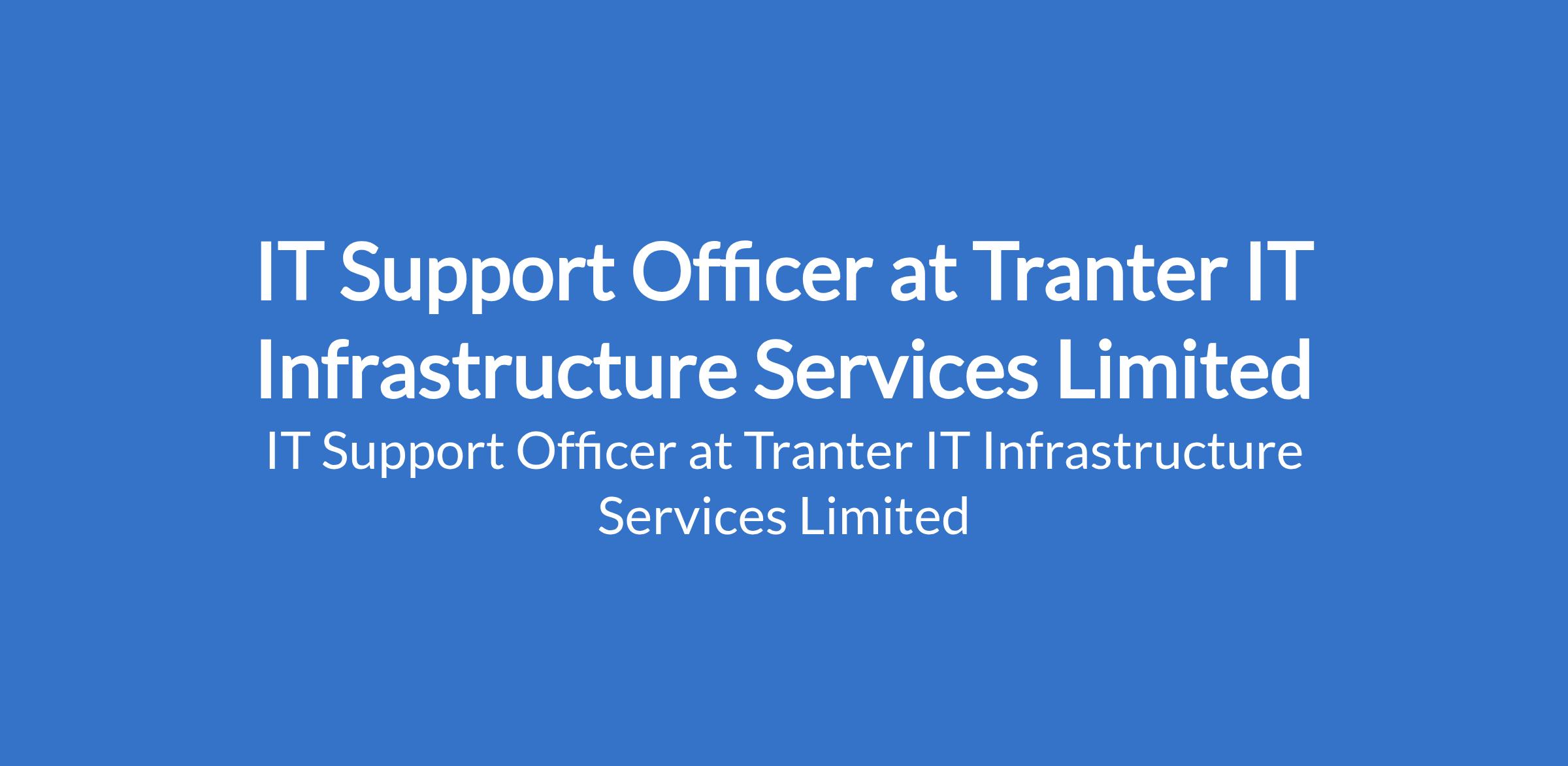 Tranter IT Infrastructure Services Limited is recruiting to fill the position of: IT Support Officer. The position is located in Warri, Delta State. Salary: N200,000 net monthly. Interested candidates should possess a Degree with a minimum of 2:2 or Lower Credit with 23 years of experience in LAN / WLAN installation and general computer networking; and must not be more than 30 years of age.