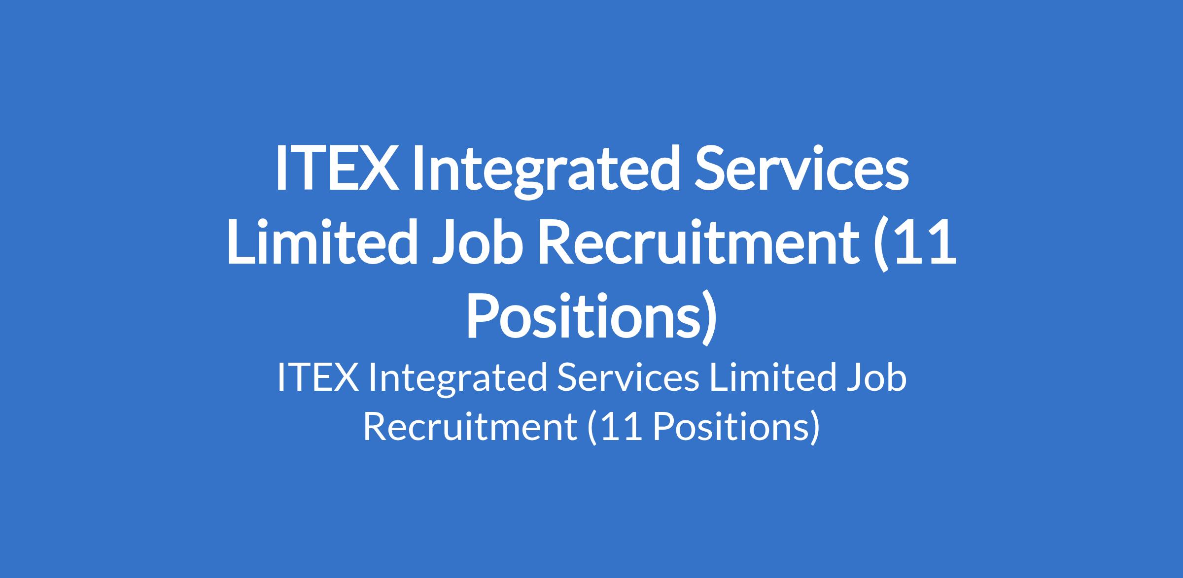 ITEX Integrated Services Limited is recruiting suitably qualified candidates to fill the following positions in Lagos State: Compliance and Risk Manager, Internal Control Officer, Business Development Manager, Admin Manager, Chief Compliance Officer, Project Manager / Scrum Master, Executive Assistant, Product Manager, IT Infrastructure Manager, POS / PTSP Configuration Officer, and AWS / AZURE / DevOps Manager.