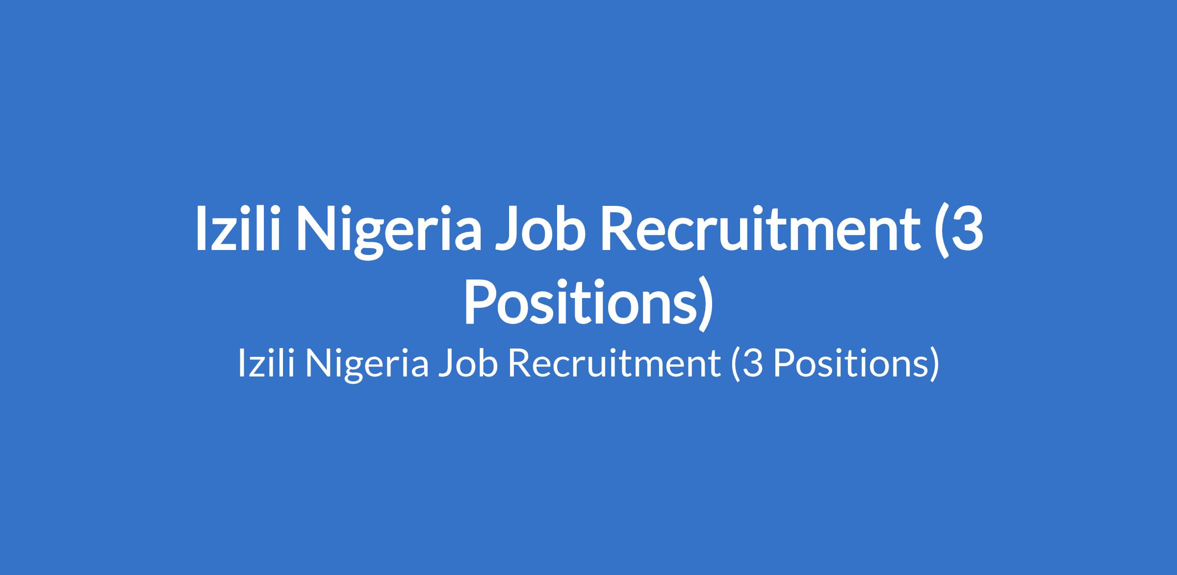 Izili Nigeria Job Recruitment (3 Positions)