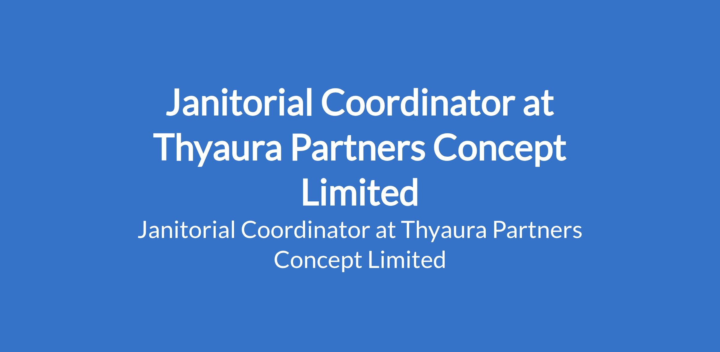 Thyaura Partners Concept Limited is recruiting to fill the position of: Janitorial Coordinator. The position is located in Anthony, Lagos State. Salary: N150,000 - N180,000 monthly. Interested candidates should possess relevant qualifications and work experience.
