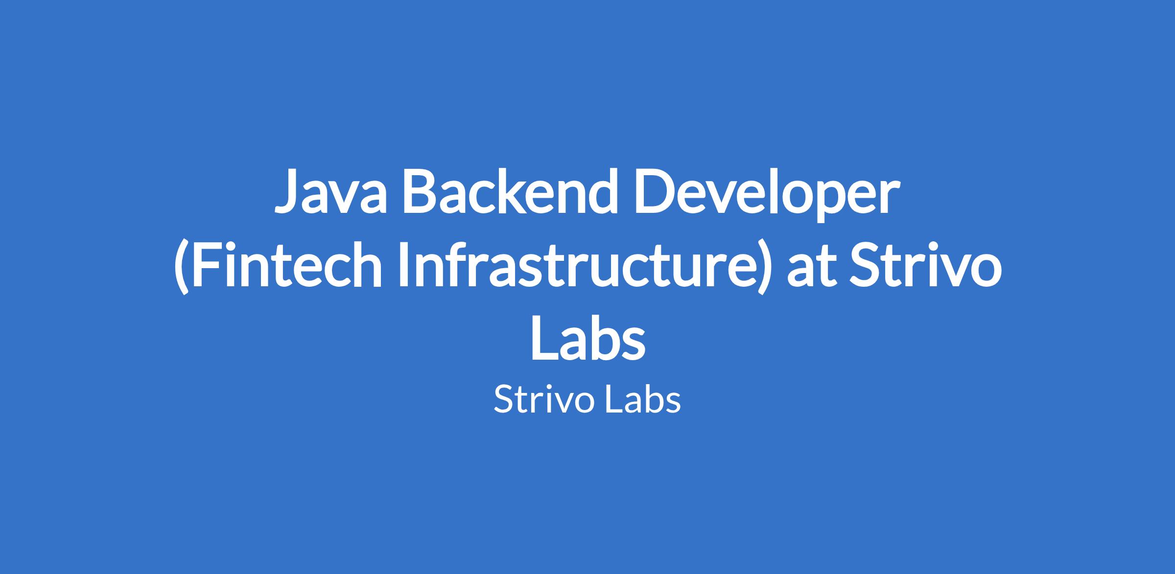 Java Backend Developer (Fintech Infrastructure) at Strivo Labs