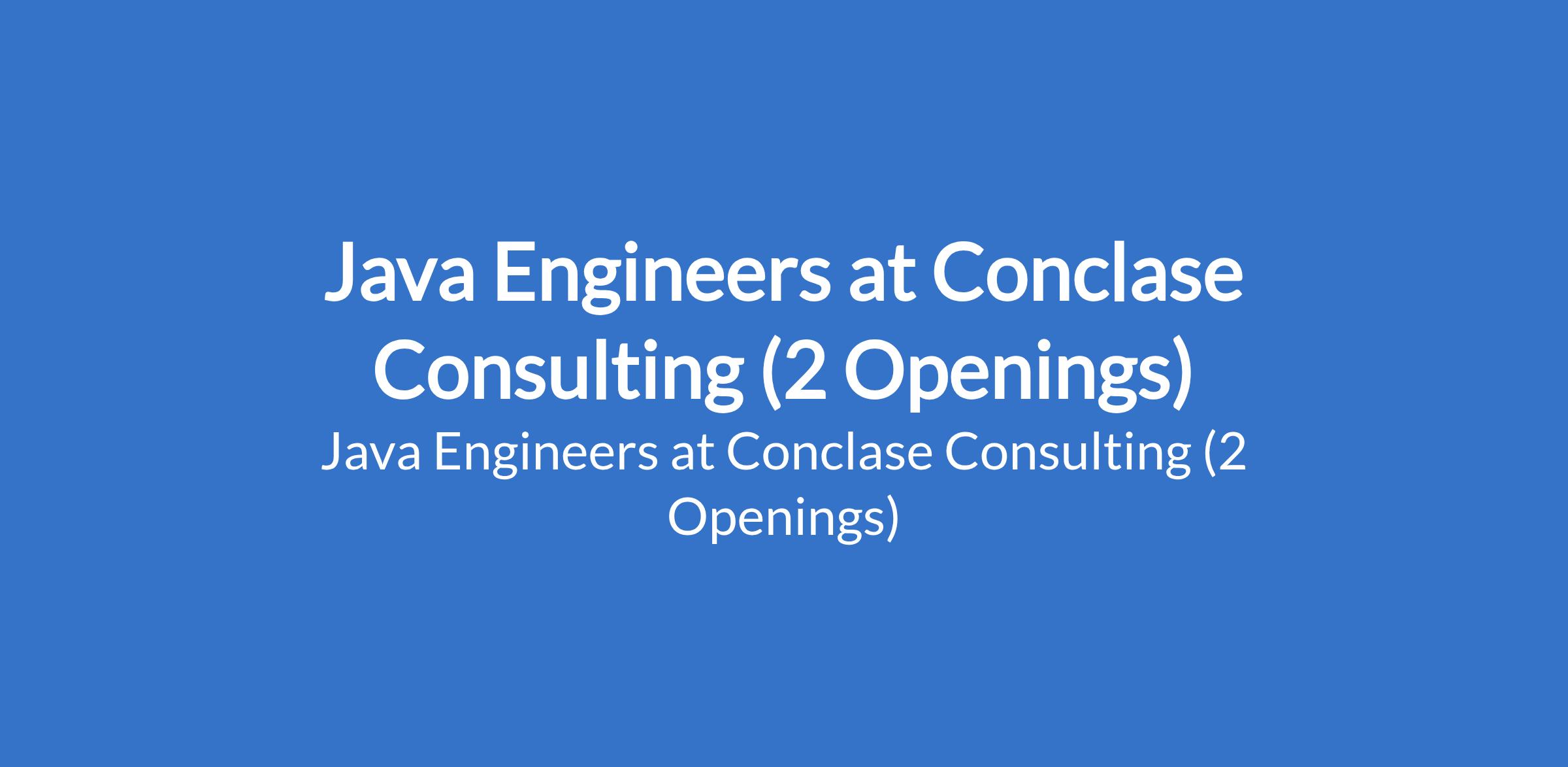 Java Engineers at Conclase Consulting (2 Openings)