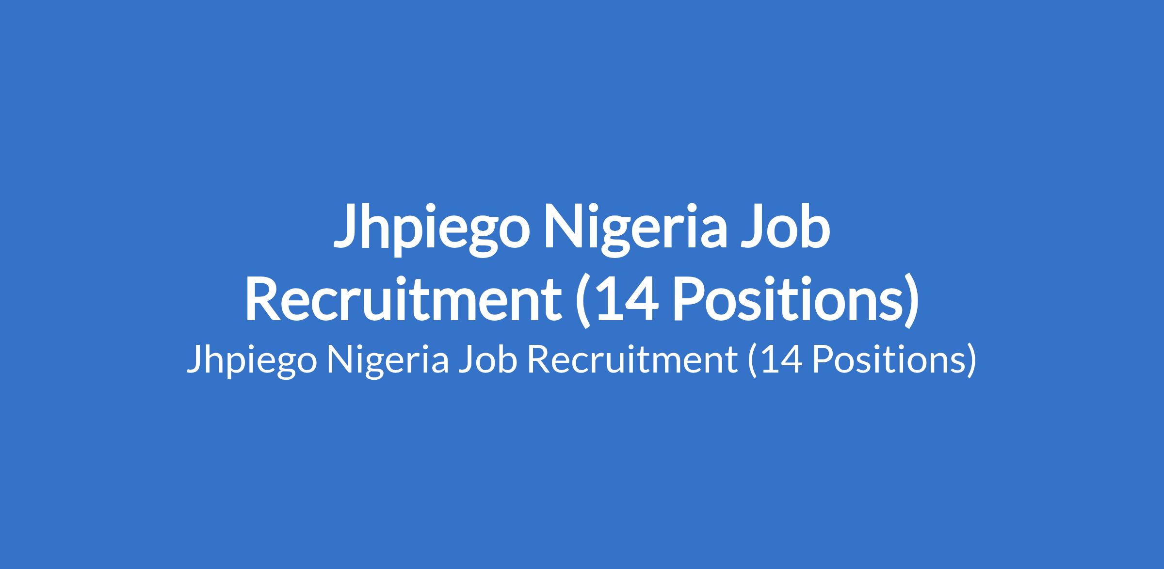 Jhpiego Nigeria is recruiting suitably qualified candidates to fill the following positions in Abuja, Kebbi and Ebonyi States: Trainers for Adaptation / Development of Community Engagement and Accountability Materials; Trainer for CSOs on Community-led Approaches to Resource Mobilization, Community Engagement Techniques, and Social Accountability; Capacity Building Trainer for Community-Based Health Volunteers (CBHVs), MAMII Vanguard Members, and CHIPS Agents on Community Engagement and Priority Maternal and Child Health Interventions; Organizational Capacity Assessment and Capacity Index Survey Trainer for State Health Agencies; Basic Emergency Obstetrics and Newborn Care (BEmONC) Capacity Builder; Trainer (SMART Advocacy Training for key program managers); Leadership Capacity Builder for State Ministry of Health Program Managers; Trainer (To facilitate workshop for the development of PY 2027 AOP); EOPD Program Manager; Capacity Builder (MCGL Implementing States on RMNCAEH + N Quality of Care); Routine Immunization (RI) Master Trainer; and Community / Facility Assistant.
