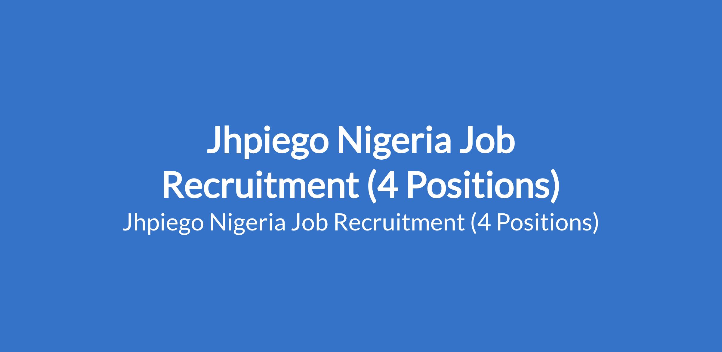 Jhpiego Nigeria is recruiting suitably qualified candidates to fill the following positions in Abuja, Jigawa, Anambra and Ebonyi States: Qualitative Research Assistant, Quantitative Research Assistant, Data Analyst, and Community / Facility Assistant.