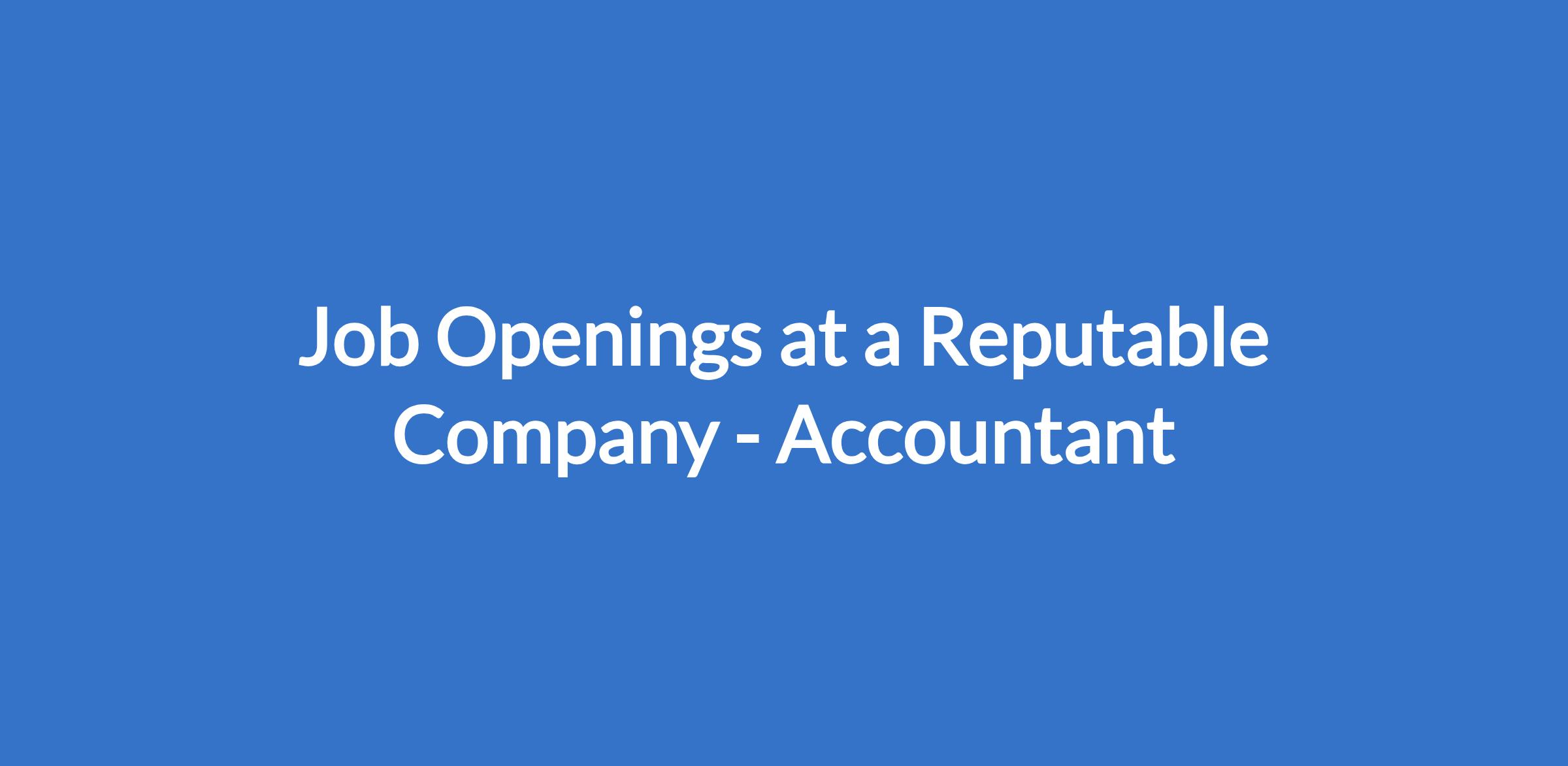 Job Openings at a Reputable Company - Accountant