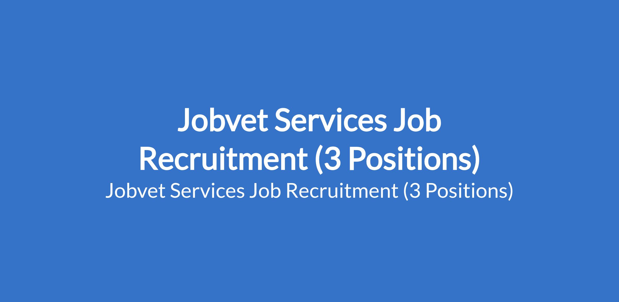 Jobvet Services Job Recruitment (3 Positions)