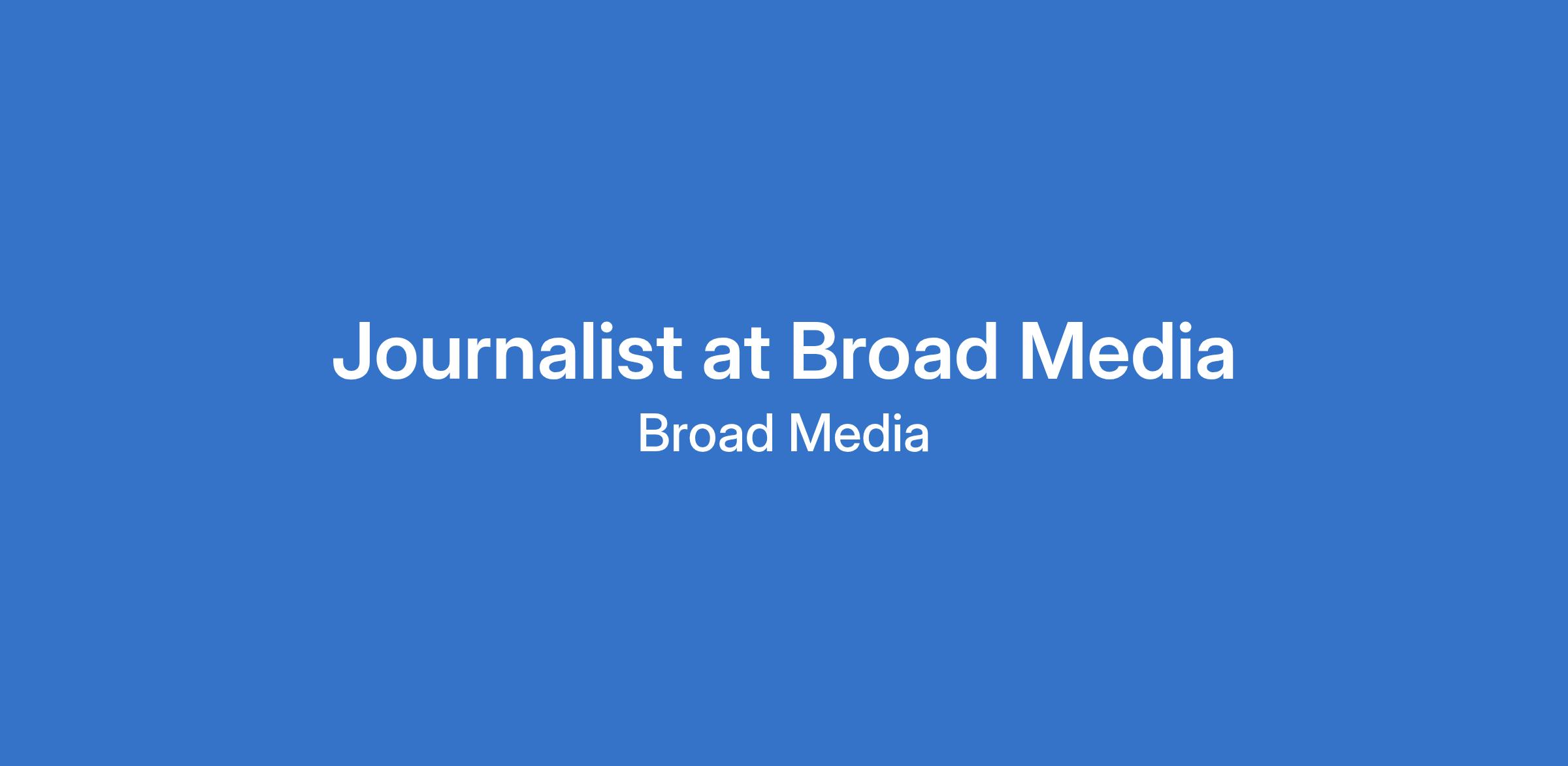 Broad Media is growing its editorial team and has a great opportunity for a journalist.
