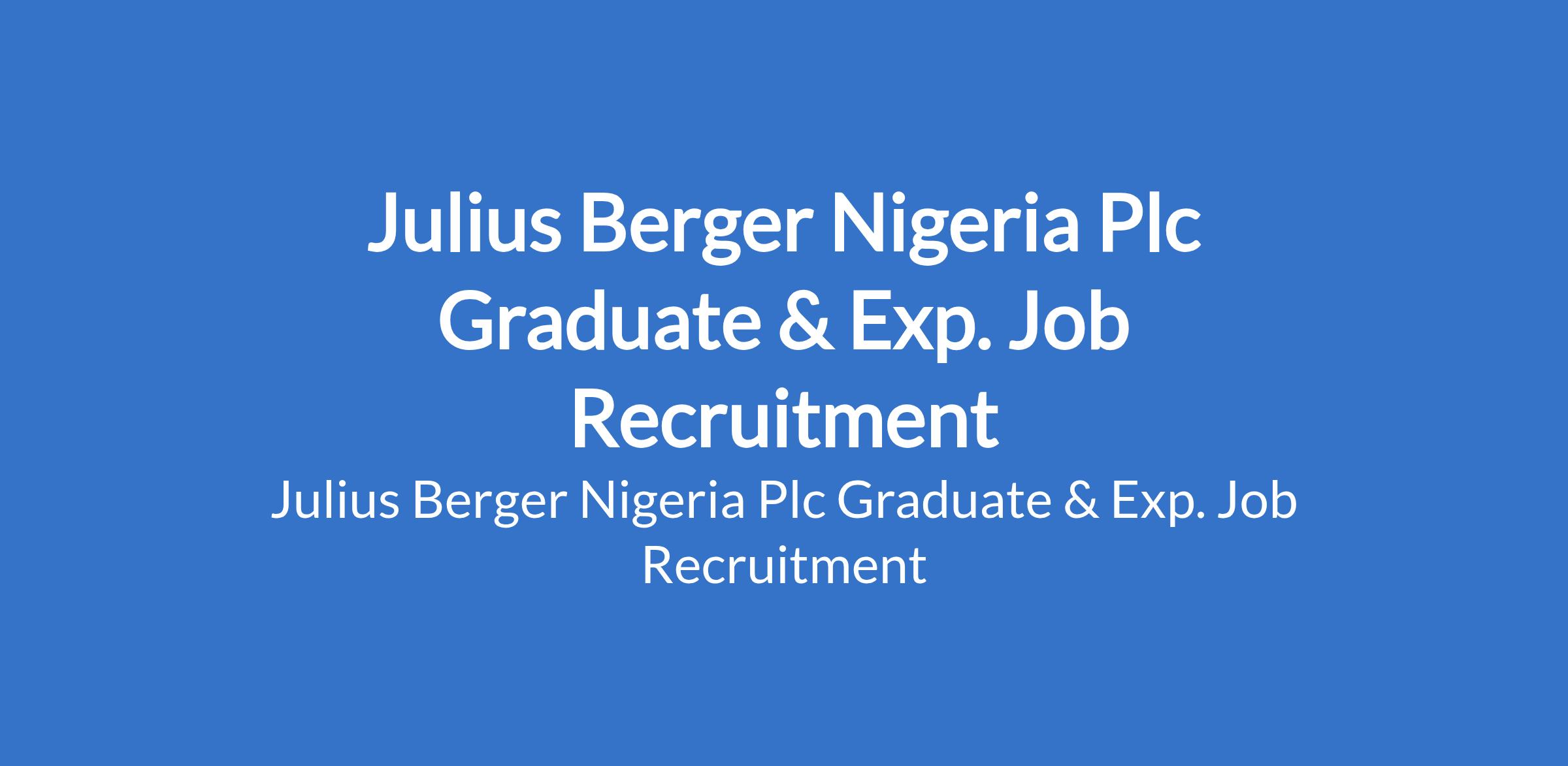 Julius Berger Nigeria Plc Graduate & Exp. Job Recruitment