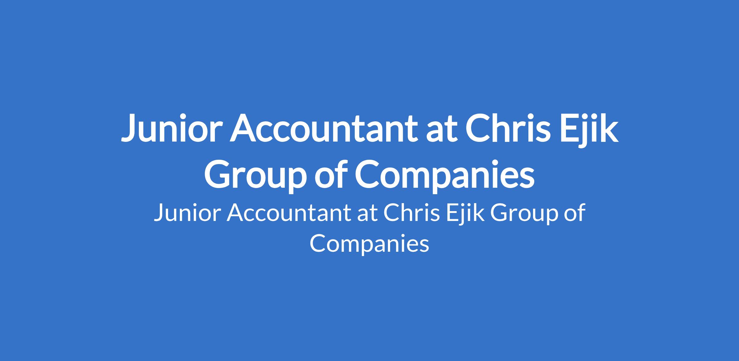 Chris Ejik Group of Companies is recruiting to fill the position of: Junior Accountant. The position is located in Ikeja, Lagos State. Interested candidates should possess a Bachelors Degree in Accounting, Finance, or related fields with 13 years of relevant accounting experience.