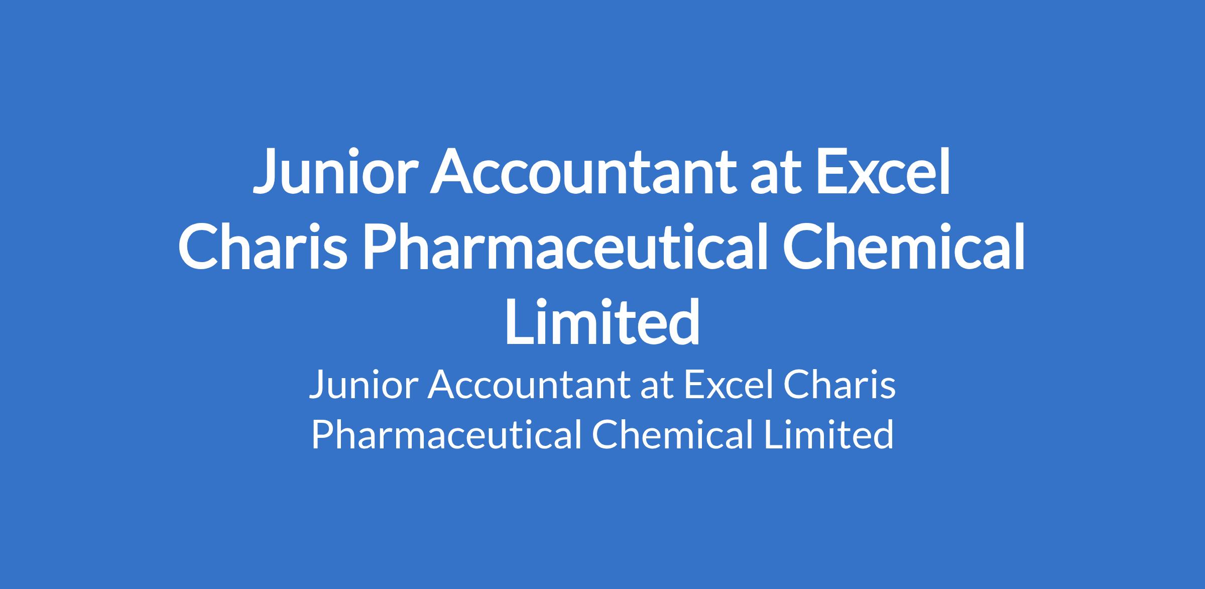Excel Charis Pharmaceutical Chemical Limited is recruiting to fill the position of: Junior Accountant. The position is located in Surulere, Lagos State. Interested candidates should possess a Bachelor's Degree in Accounting or related fields and must have proven (0-1) year work experience in accounting or other analytical role.