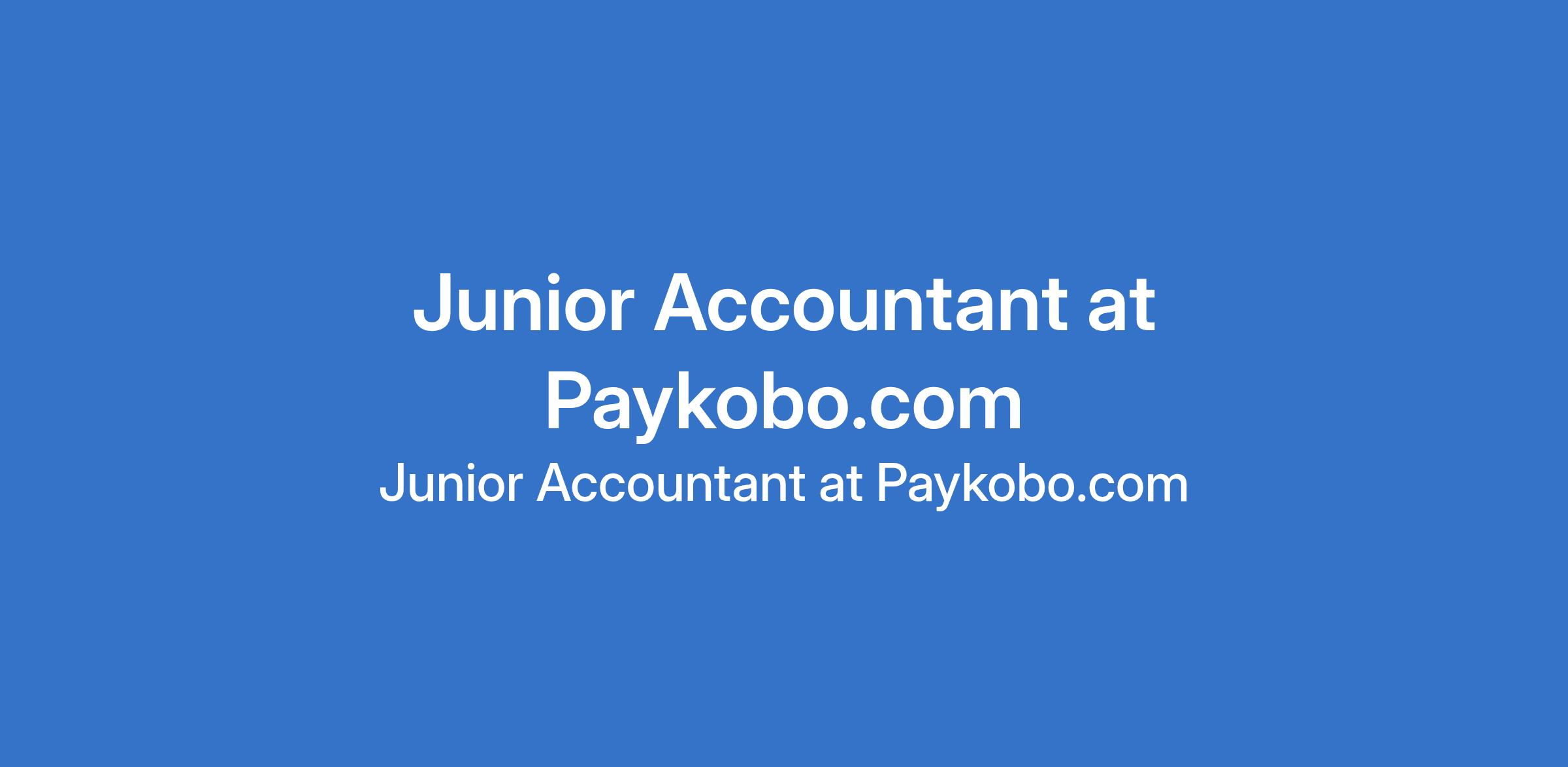 Paykobo.com is recruiting to fill the position of: Junior Accountant. The position is located in Ikeja, Lagos State. Salary: N130,000 monthly. Interested candidates should possess an SSCE or OND / NCE in Accounting or Finance with 1-2 years expereience.