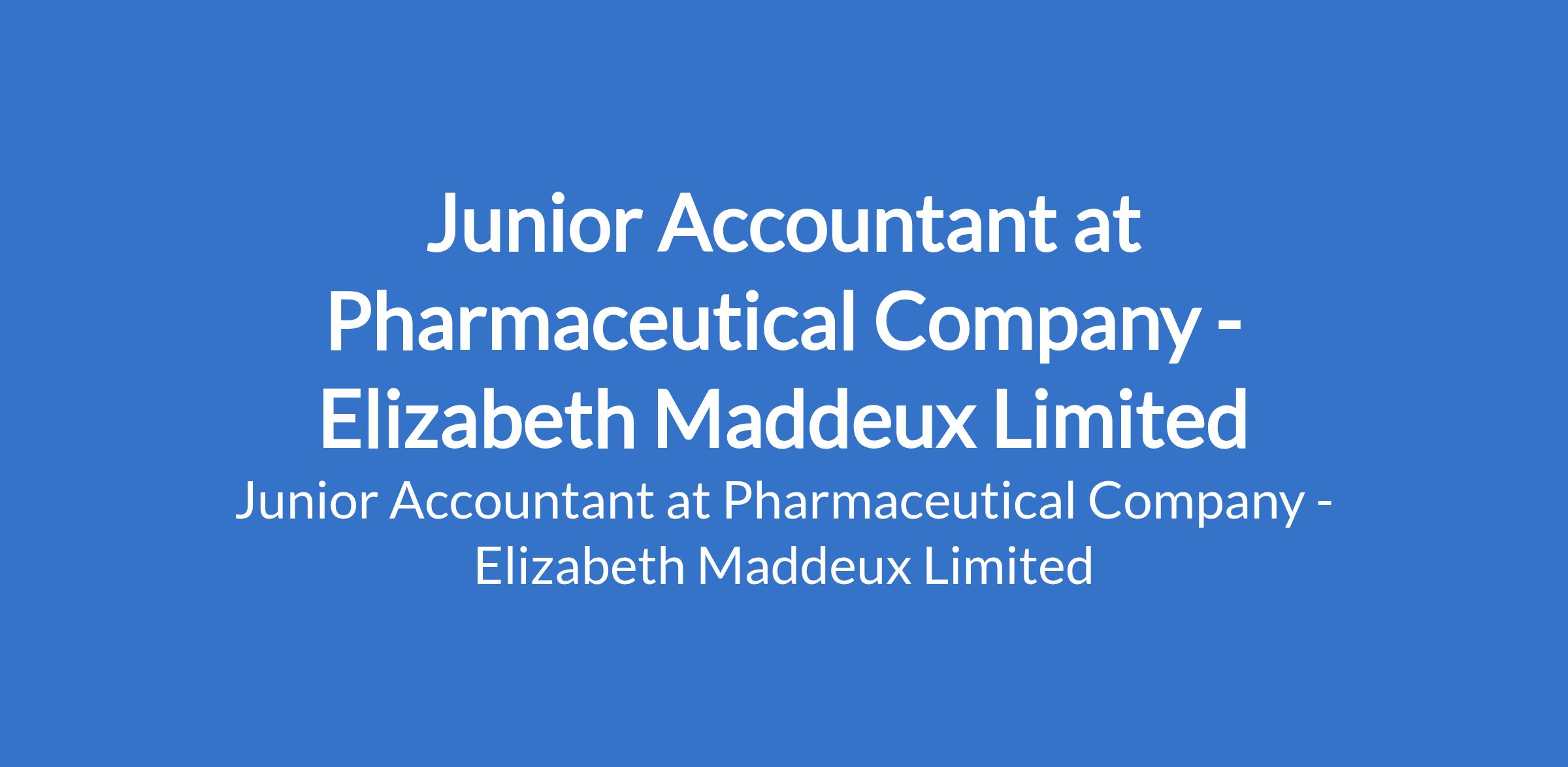 Elizabeth Maddeux Limited - Our client, a leading organization in the pharmaceutical company is recruiting to fill the position of: Junior Accountant. The position is located in Egbeda, Lagos State. Salary: N150,000 / month. Interested candidates should possess a Bachelors Degree in Accounting, Finance, or a related field with 1 - 3 years accounting experience, preferably in pharmaceutical, FMCG, or regulated industries.