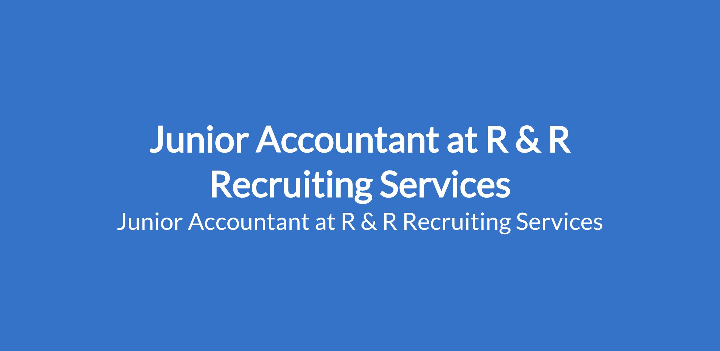 Junior Accountant at R & R Recruiting Services