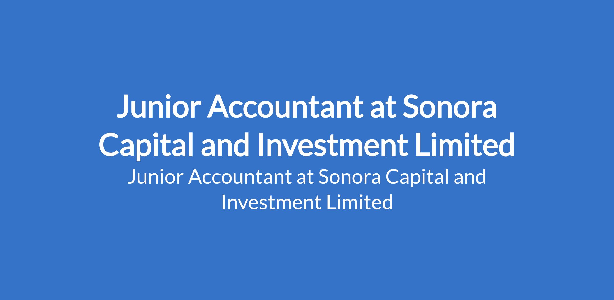 Sonora Capital and Investment Limited is recruiting to fill the position of: Junior Accountant. The position is located in Ikoyi, Lagos State. Salary: N200,000 - N250,000 per month. Interested candidates should possess minimum of an OND / HND / BSc in Accounting, Finance, or related field.